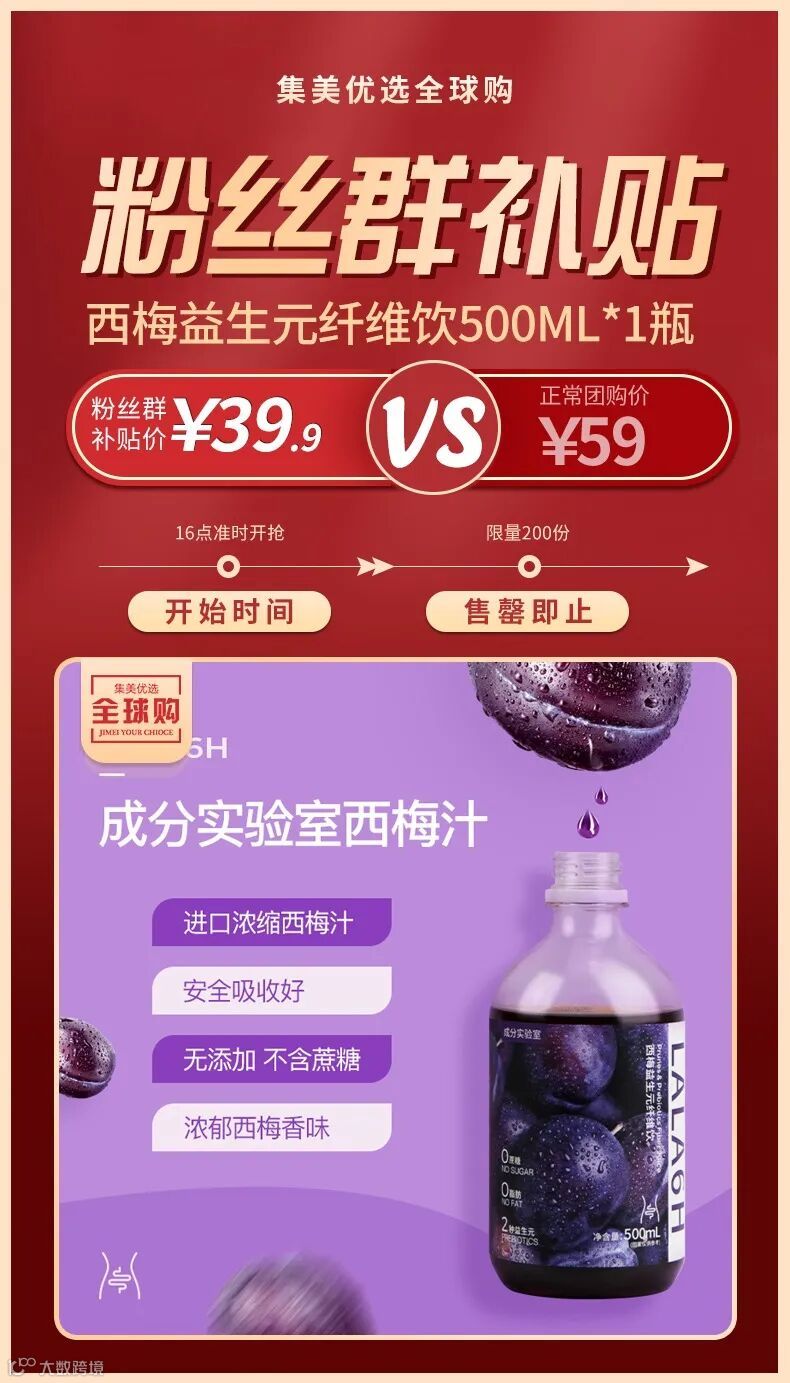 【粉丝群补贴】西梅益生元纤维饮500ml 原价:59元 粉丝群补贴价:39.9元