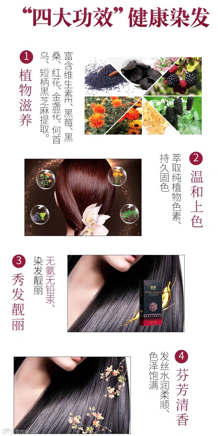 采用中药与现代科技结合的植物萃取精华配方,安全健康便捷,洗,染,护三效合一,安全无副作用!