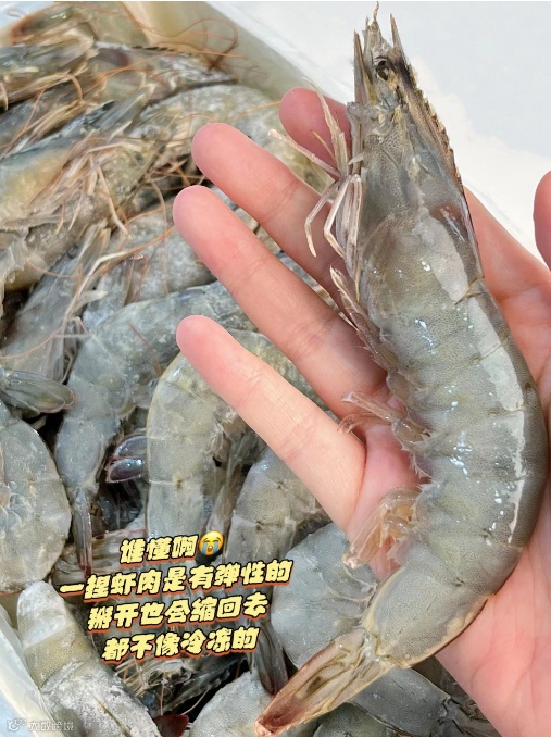 通体色泽青亮,口感鲜甜接近野生虾口感!