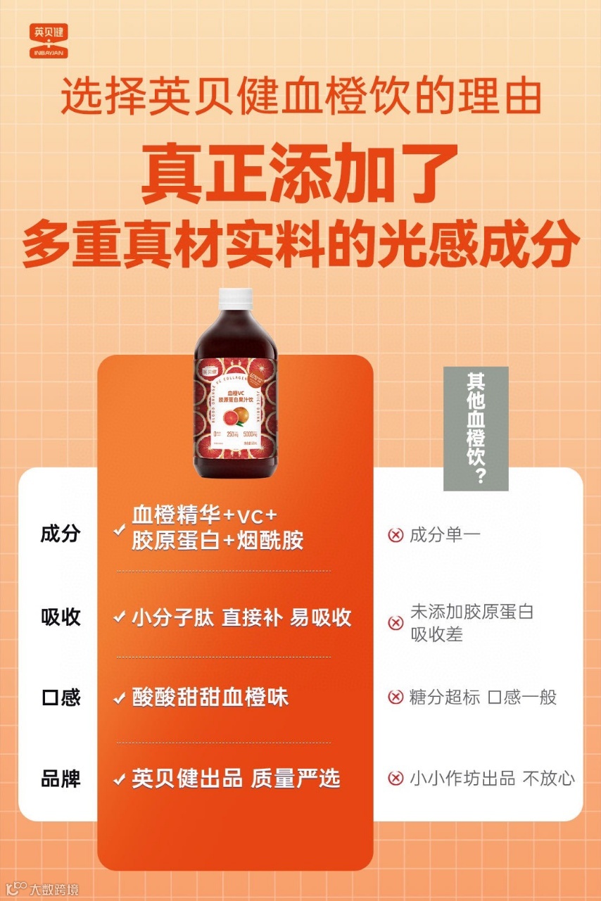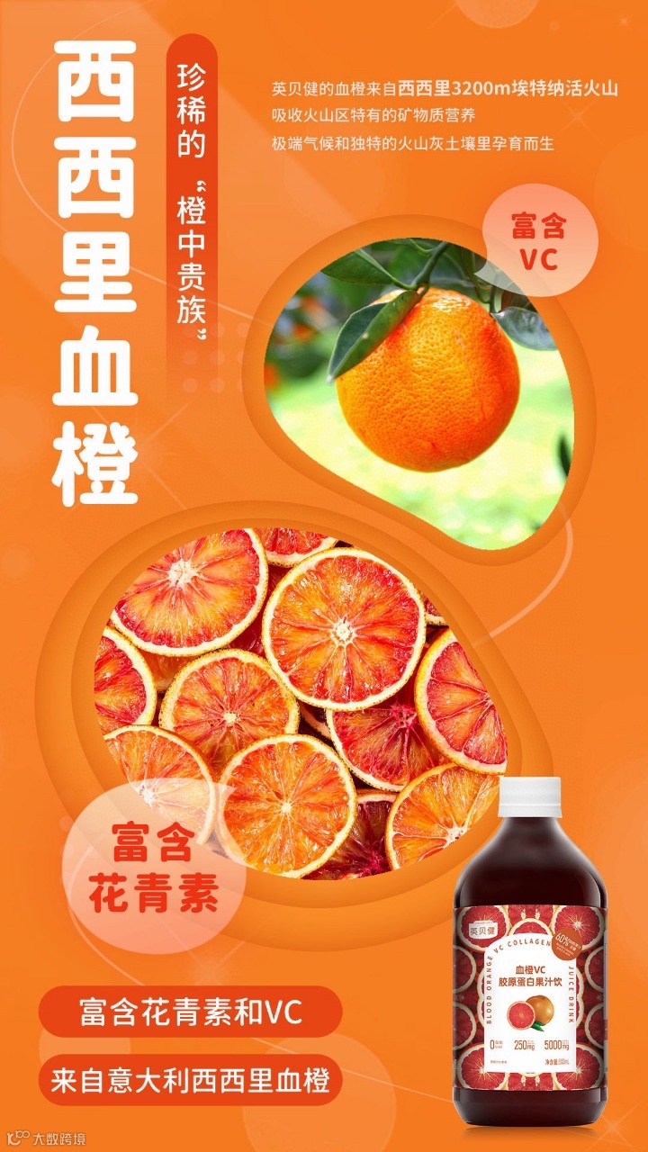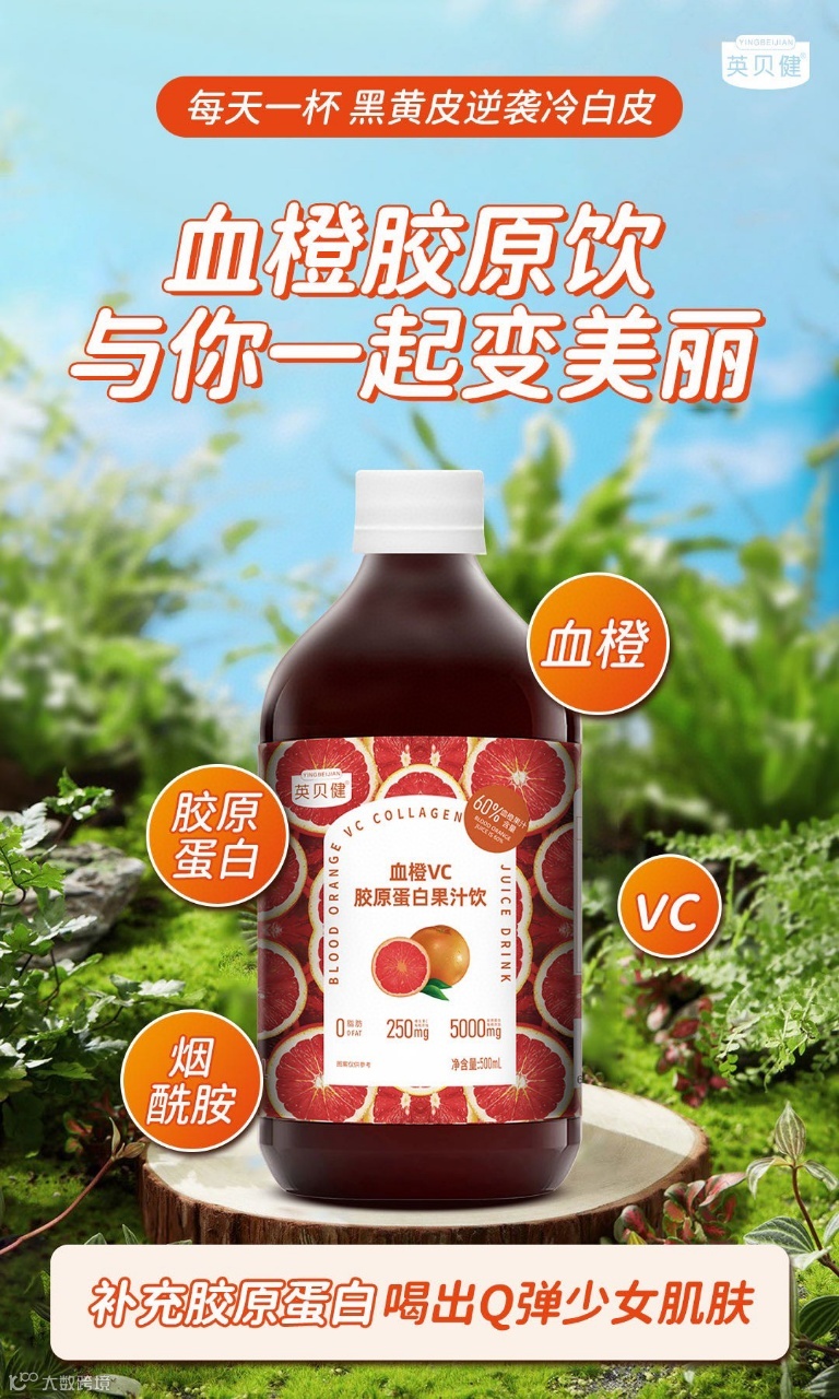 英贝健血橙胶原饮——“可以喝的红宝石”