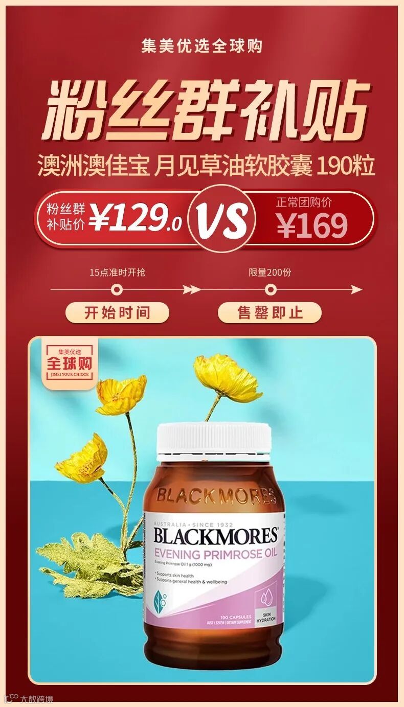【粉丝群补贴】澳洲Blackmores澳佳宝 月见草油软胶囊 190粒*1瓶