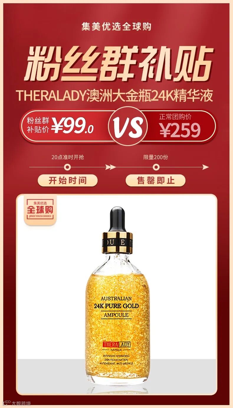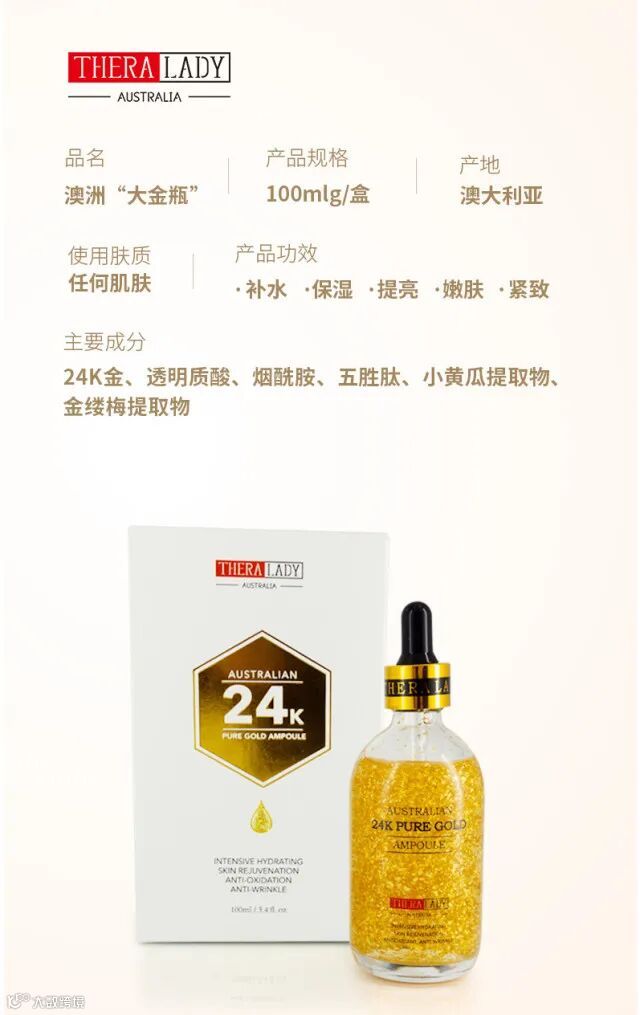 【粉丝群补贴】THERALADY澳洲大金瓶24K黄金精华液100ml补水保湿面部精华精华补水保湿 原价:259元 粉丝群补贴价:99元