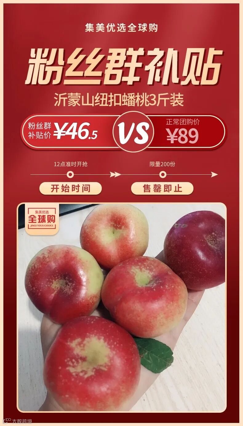 【粉丝群补贴】沂蒙山纽扣蟠桃3斤装 原价:89元