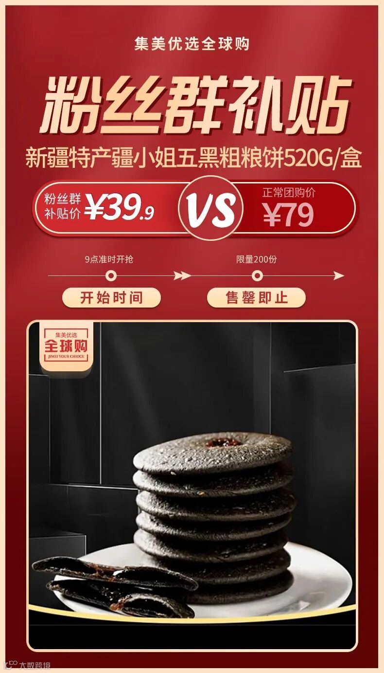 【粉丝群补贴】新疆特产疆小姐五黑粗粮饼520g/盒(25枚) 原价:79元 粉丝群补贴价:39.9元