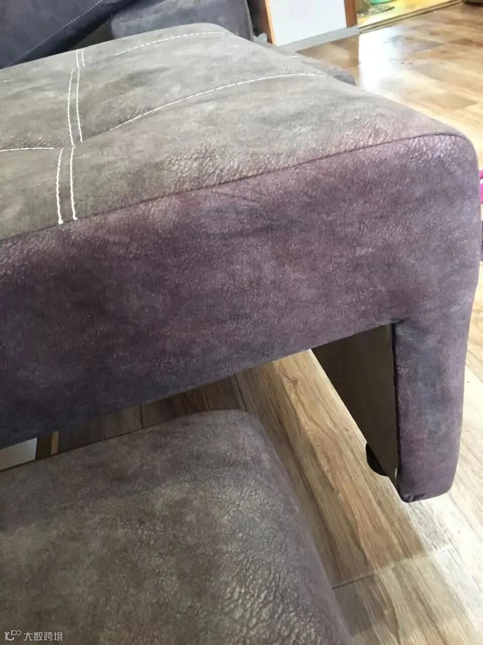 这种面料是近两年火爆内销家具市场的科技布. 最大的特点是外观和质感非常像“皮”,具有真皮的纹理和色泽 又有布艺的透气性。有良好的防水、防尘、透气等性能被称为“会呼吸的面料”。 不过由于面料的特性和烫金厂用料/技术水平的参差不齐,有些科技布做成的沙发会出现寿命较短的问题,比如褪色,花形脱落等。