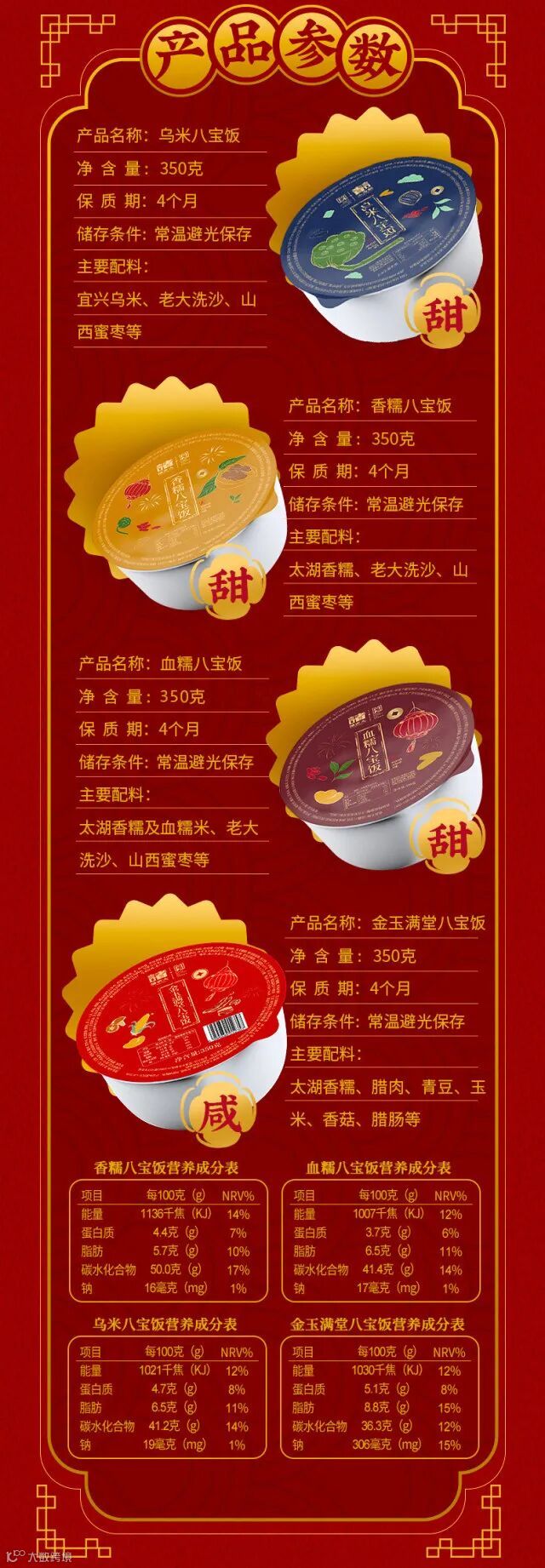 【口味】:香糯八宝饭/血糯八宝饭/乌米八宝饭/金玉满堂八宝饭