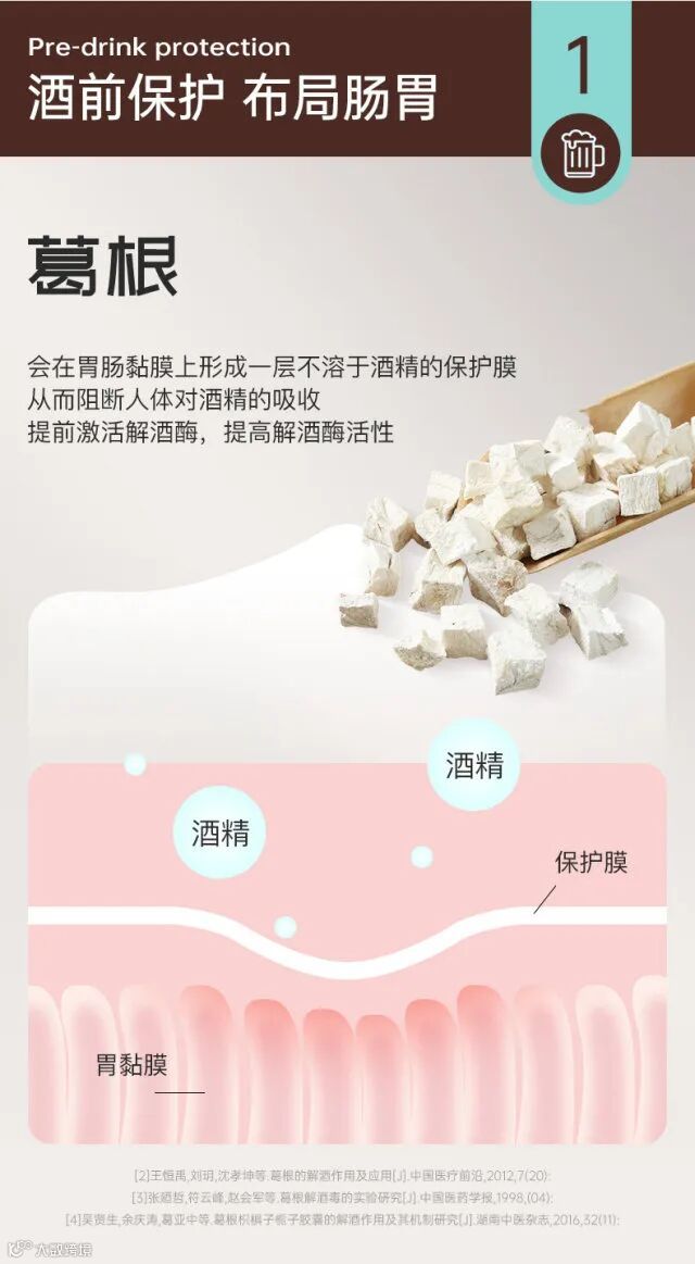 【适用人群】酒量差、酒中恶心呕吐、酒后宿醉酒量小、感明显、常喝酒损肝伤胃人群