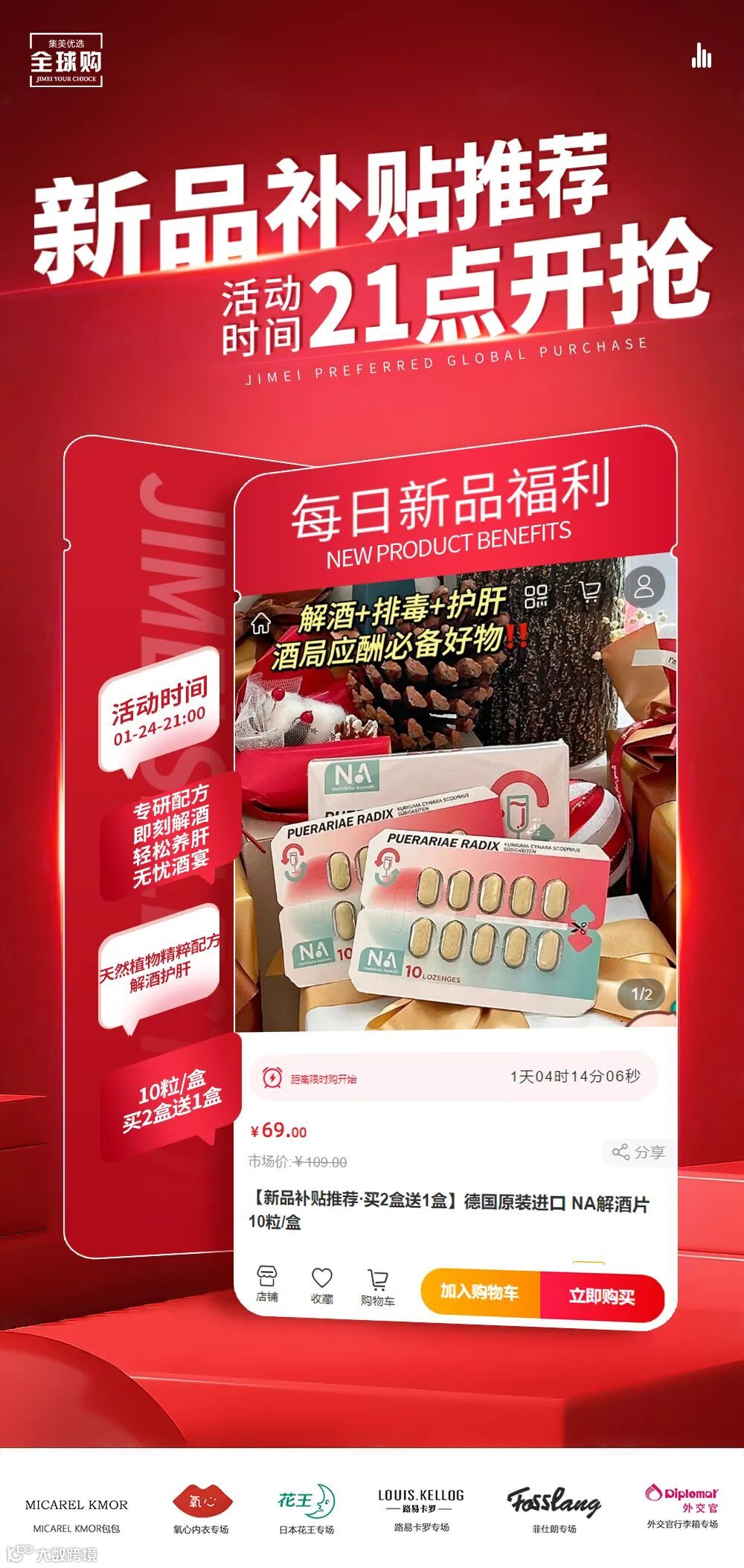 【新品补贴推荐·买2盒送1盒】德国原装进口 NA解酒片10粒/盒