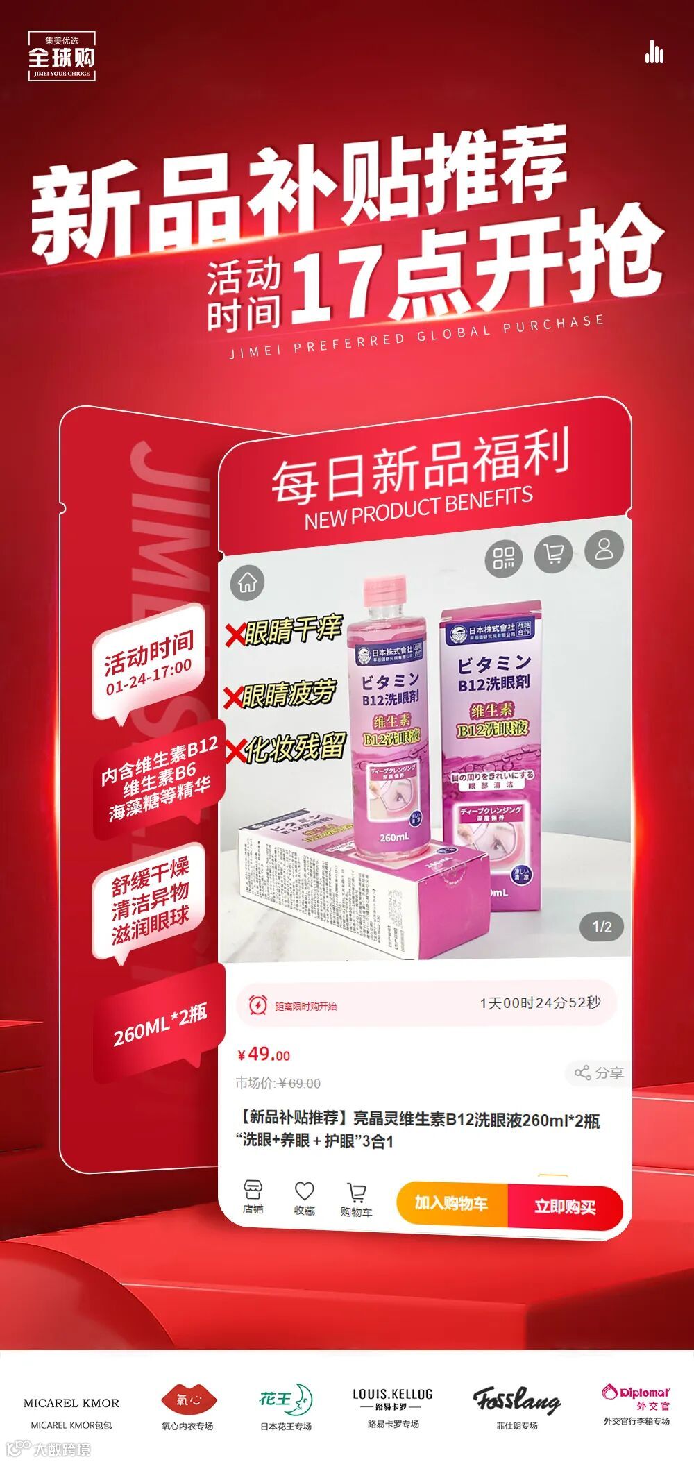 【新品补贴推荐】亮晶灵维生素B12洗眼液260ml*2瓶“洗眼+养眼+护眼”3合1