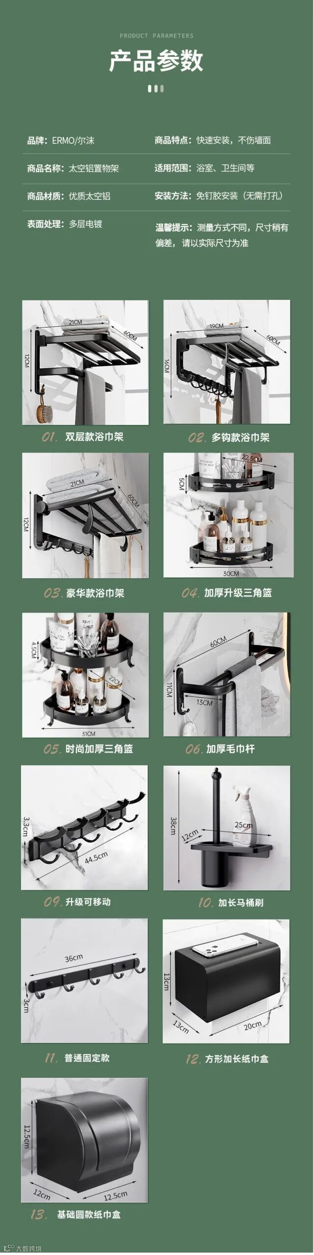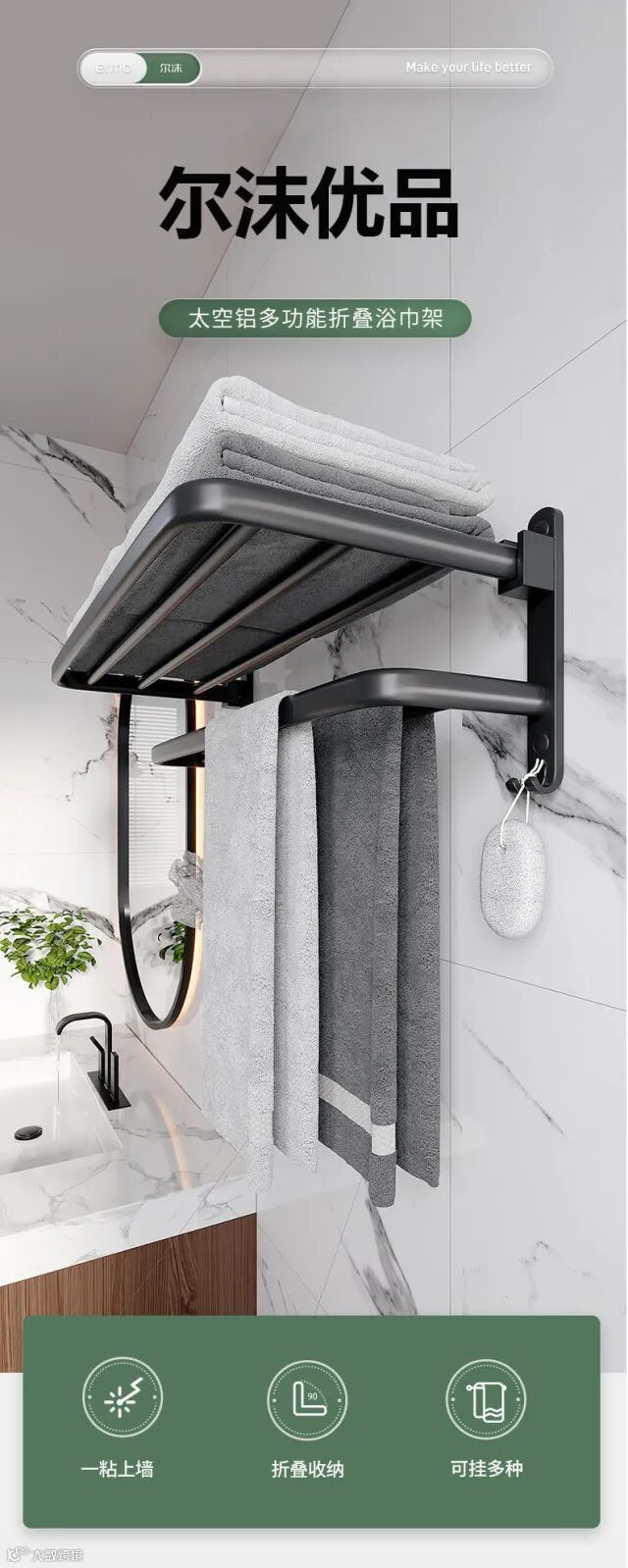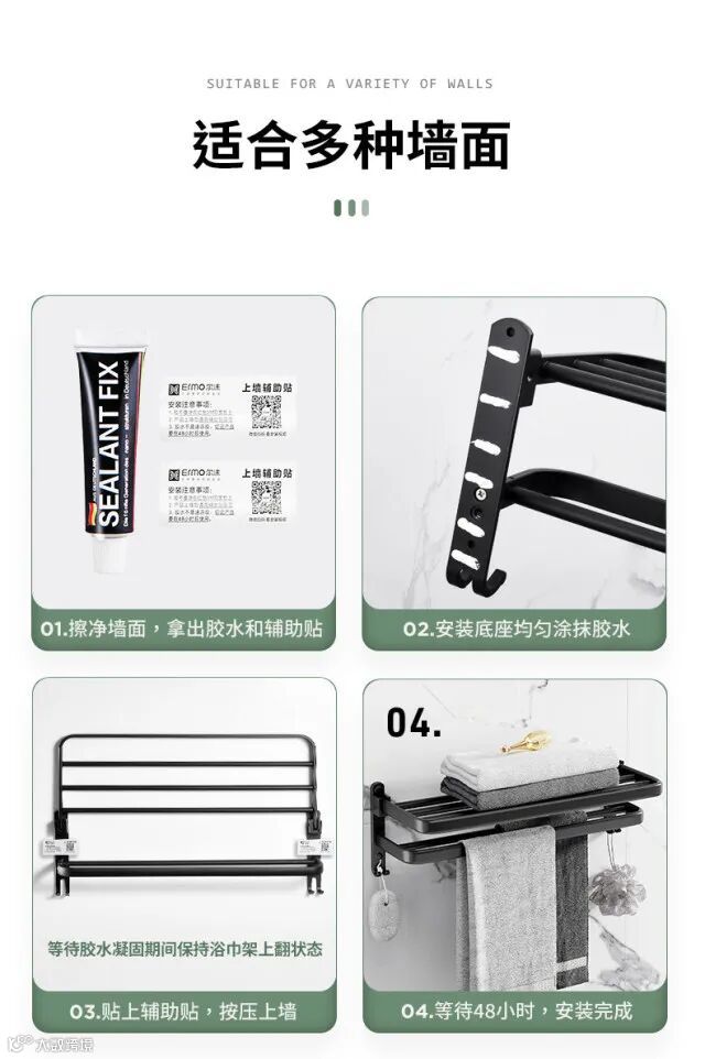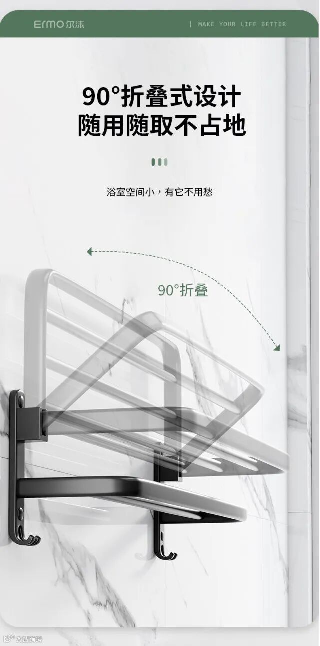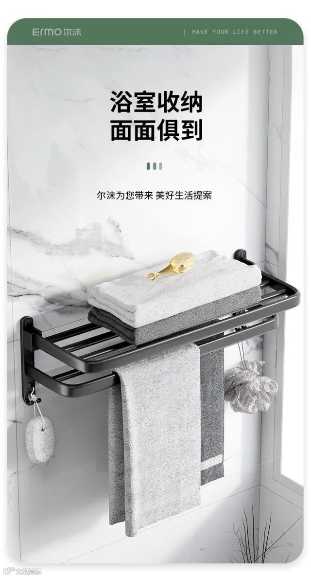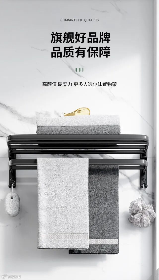 【收纳用品】卫生间置物架免打孔太空铝毛巾架厕所浴室浴巾架酒店卫浴五金挂件 原价:59元 粉丝群补贴价:44元起