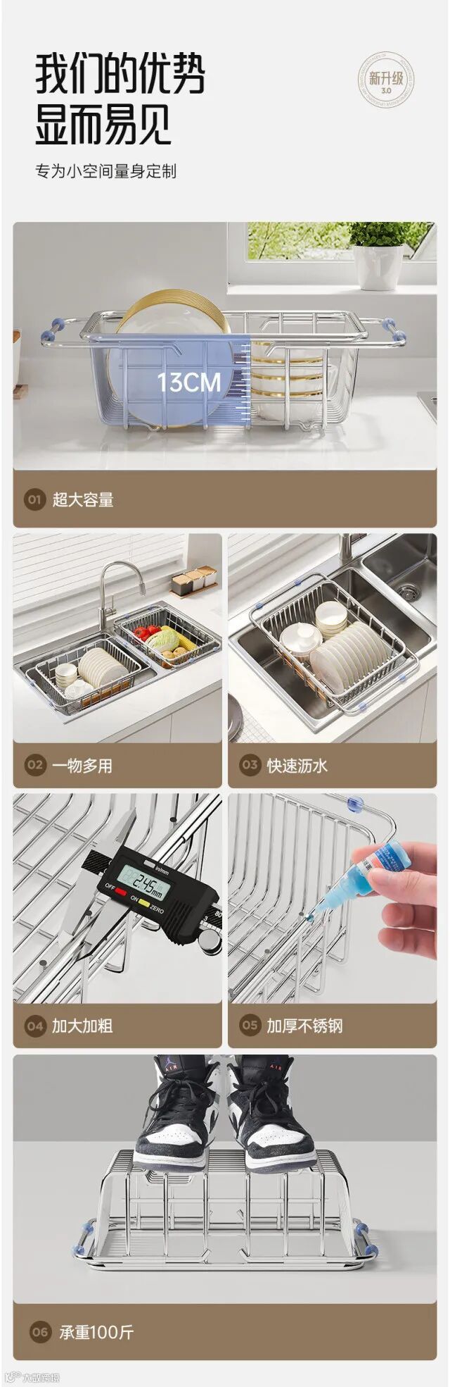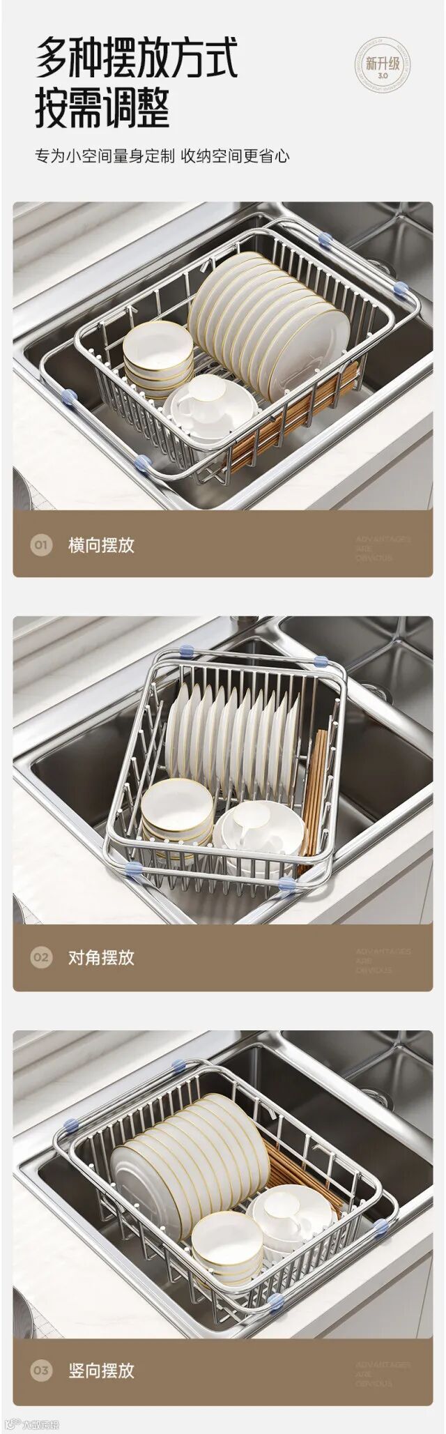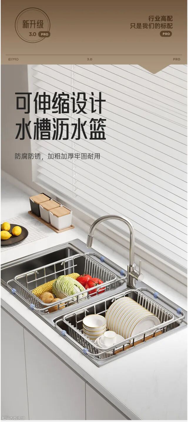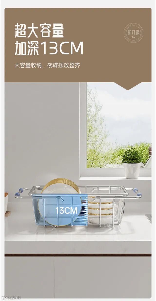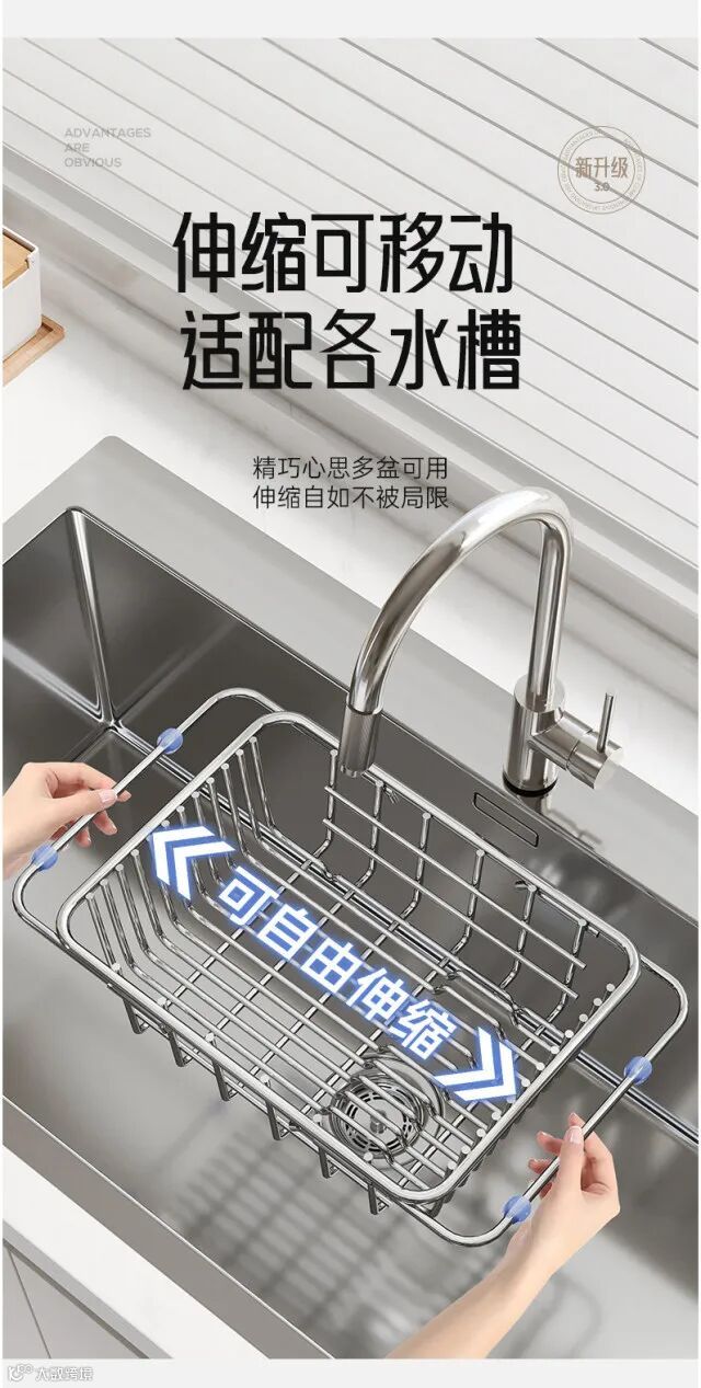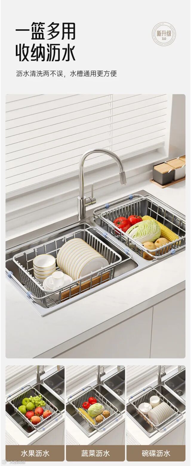 【居家收纳】水槽沥水篮不锈钢洗碗池洗菜盆伸缩厨房置物架碗碟收纳架 原价:59元 粉丝群补贴价:48元起