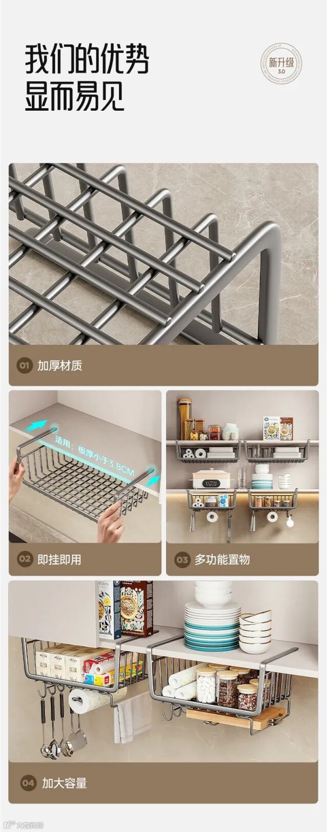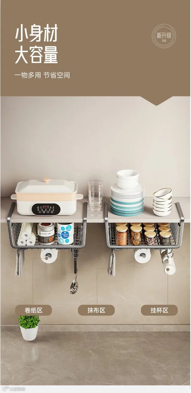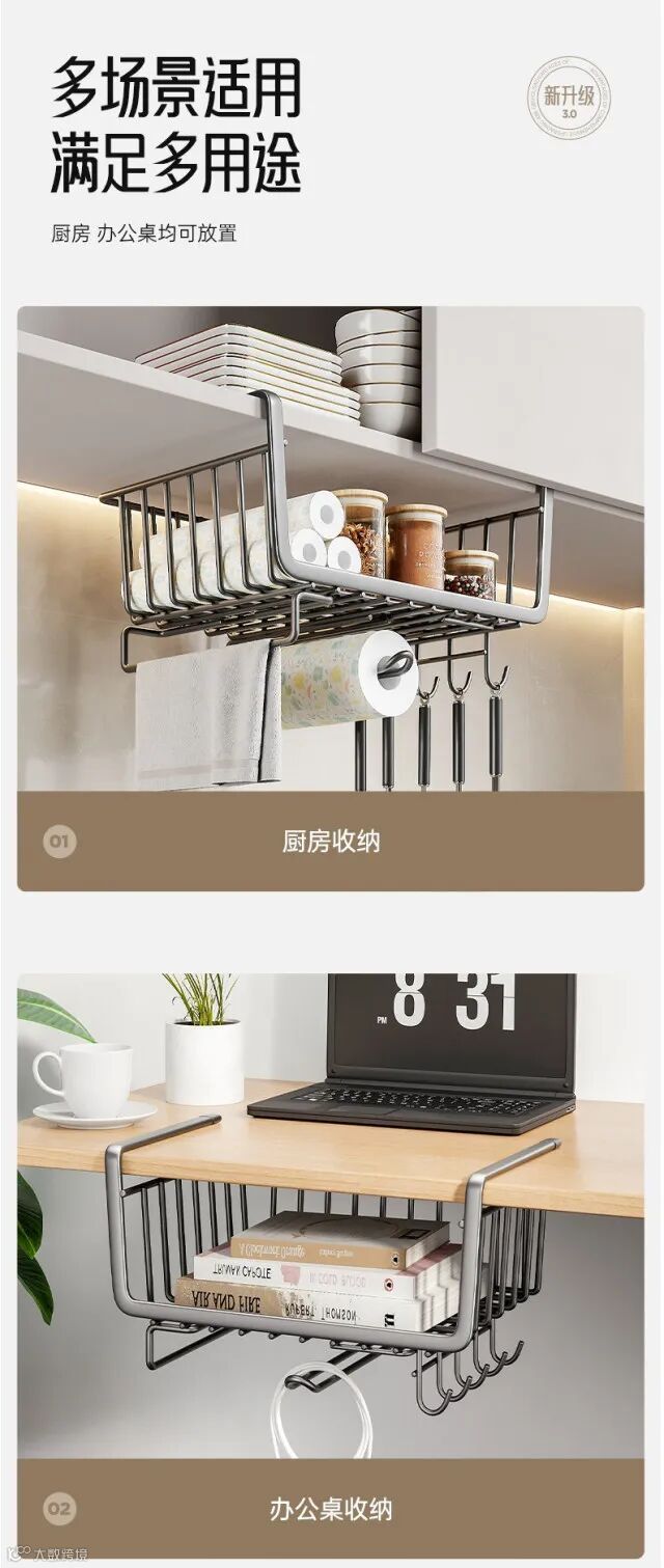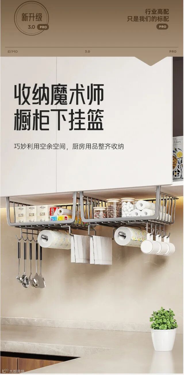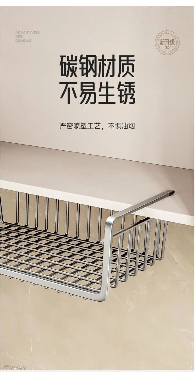 【居家收纳】厨房置物架收纳挂架分层挂篮下挂收纳挂架 原价:49元 粉丝群补贴价:31元起