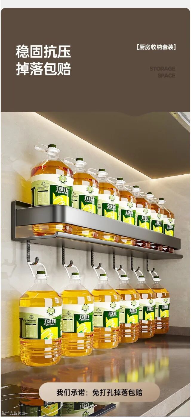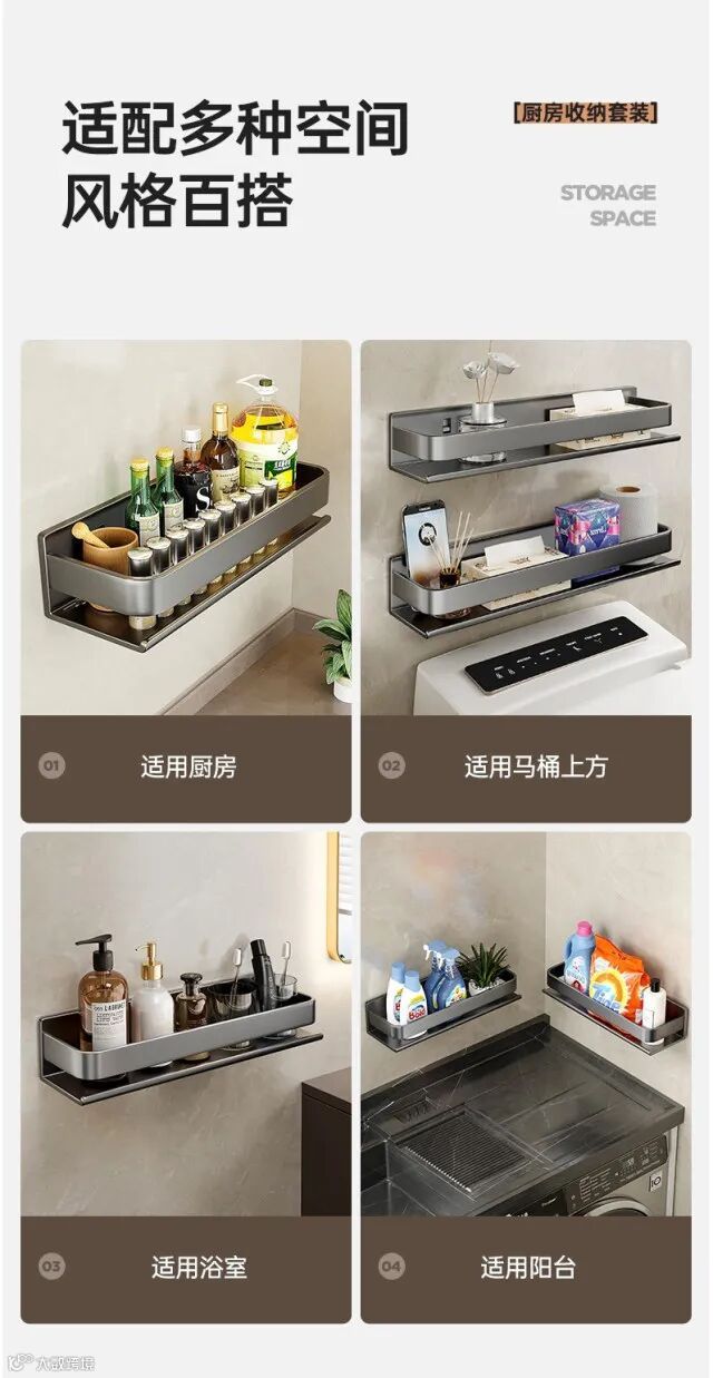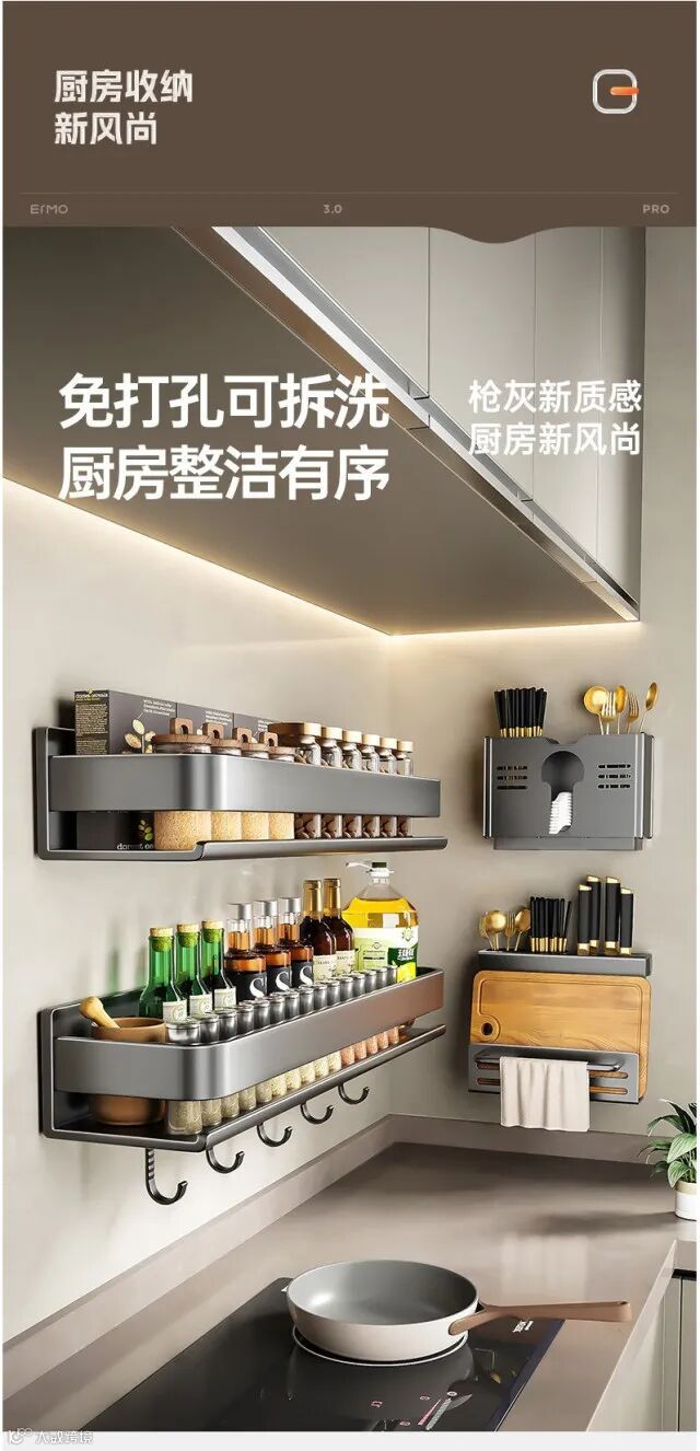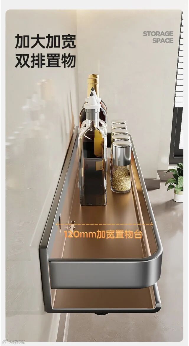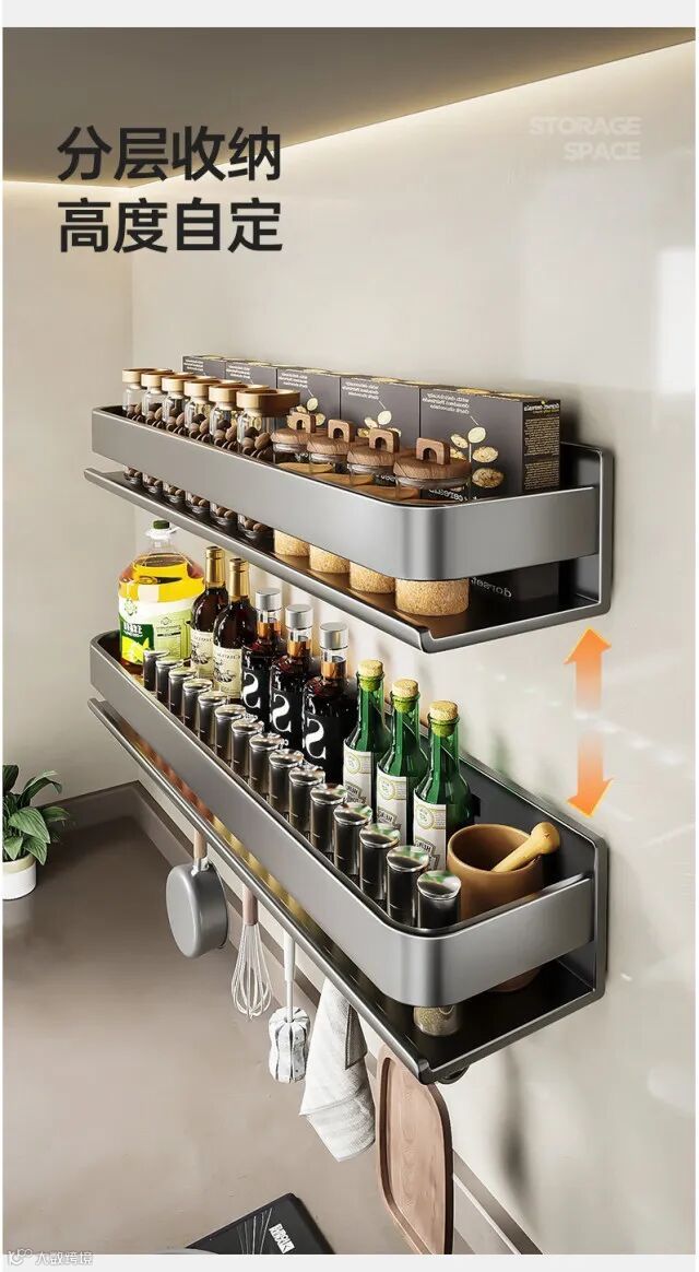 【收纳用品】轻奢厨房置物架调料架碳钢免打孔壁挂式调味料家用品墙上收纳架子 原价:79元 粉丝群补贴价:59元起