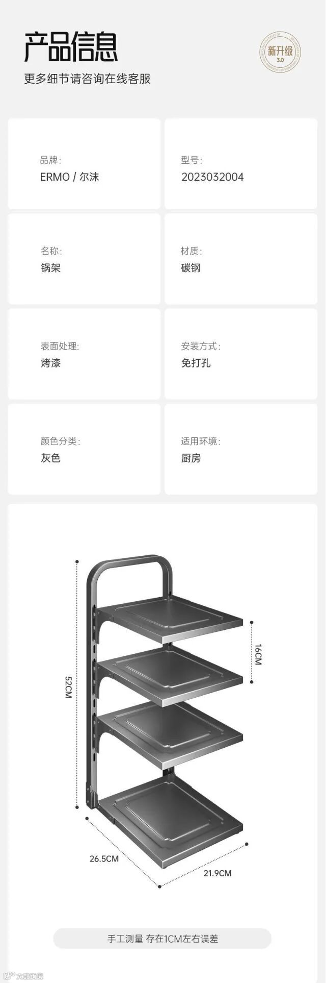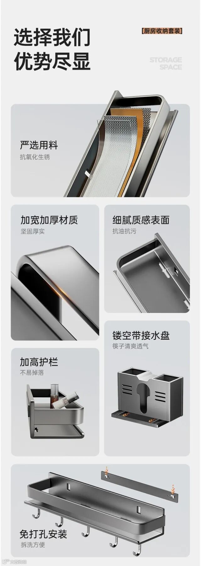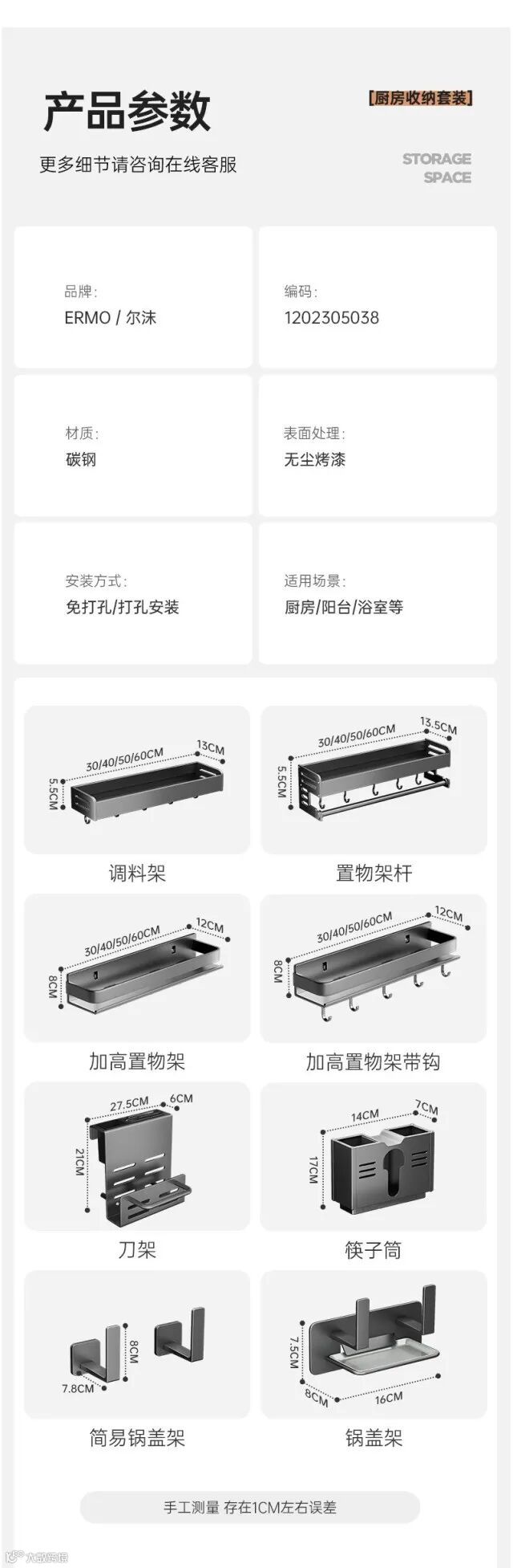 【收纳用品】轻奢厨房置物架调料架碳钢免打孔壁挂式调味料家用品墙上收纳架子 原价:79元 粉丝群补贴价:59元起