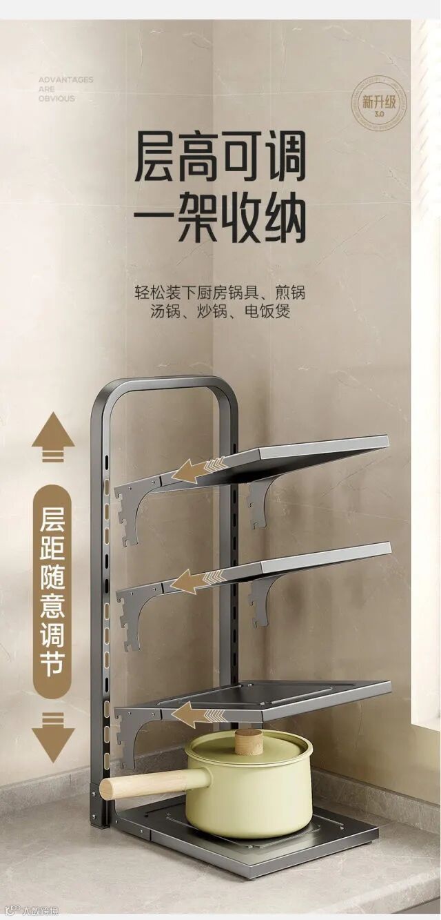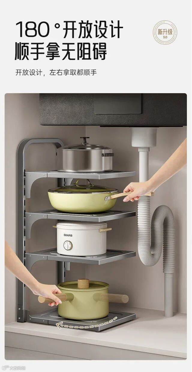 【居家收纳】厨房多层置物架家用多功能橱柜下水槽锅具灶台分层放锅架收纳架子 原价:89元 粉丝群补贴价:62元起