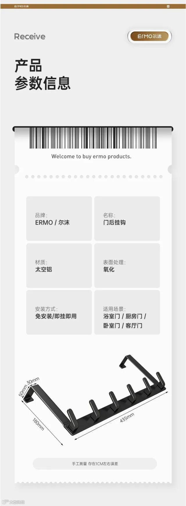 【居家收纳】门后挂钩卧室挂衣架衣服挂架承重免打孔壁挂墙上宿舍收纳帽子 原价:79元 粉丝群补贴价:42元起