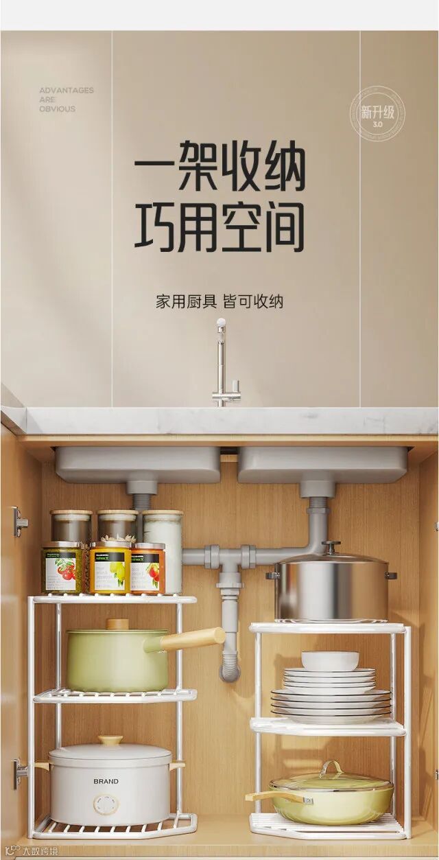 【家居收纳】厨房置物架多层家用多功能橱柜分层下水槽锅具收纳架子 原价:49元 粉丝群补贴价:28元起
