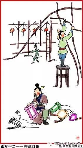 正月十二,搭建灯棚。元宵节将近,开始做元宵赏灯的准备工作。