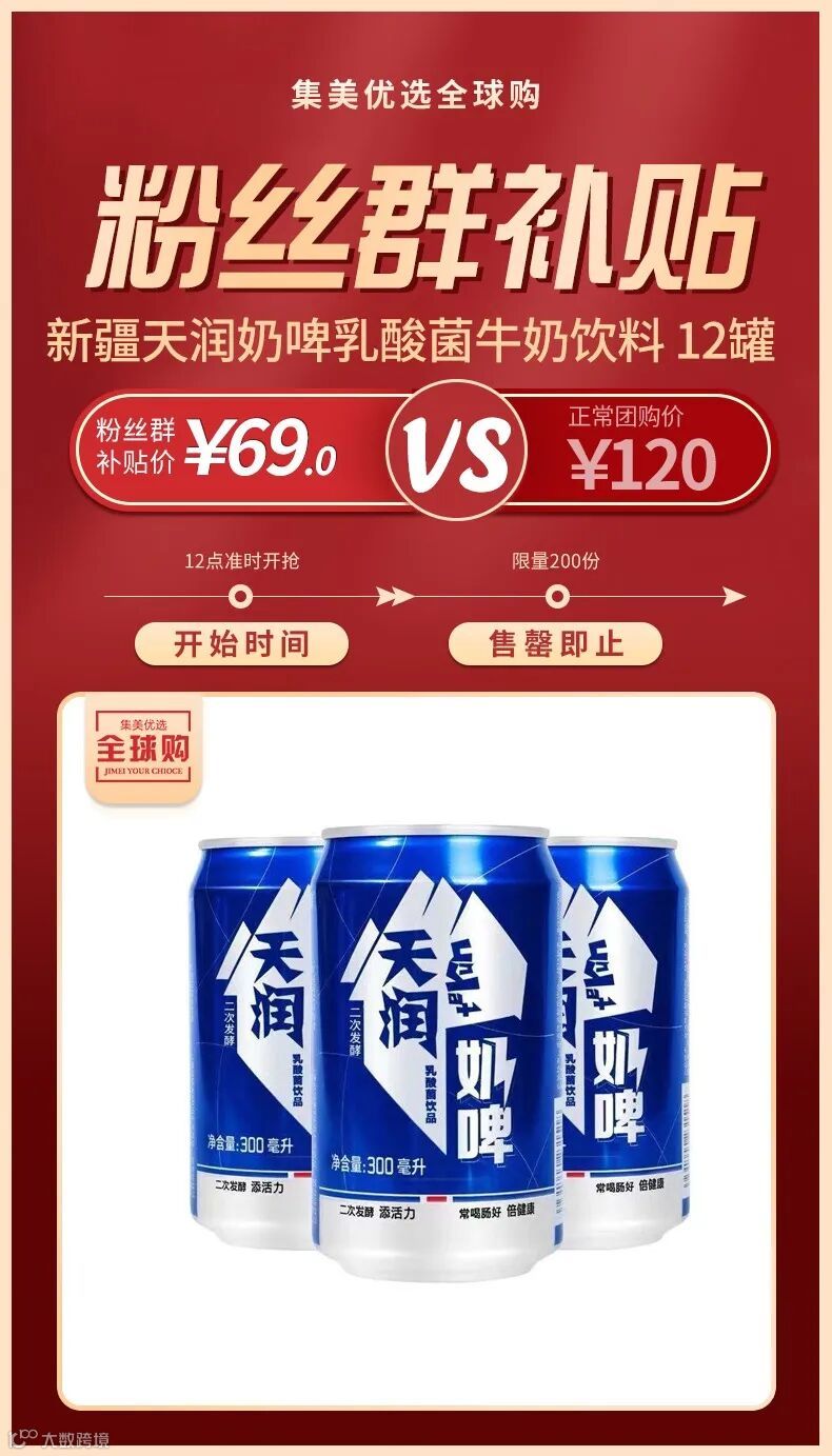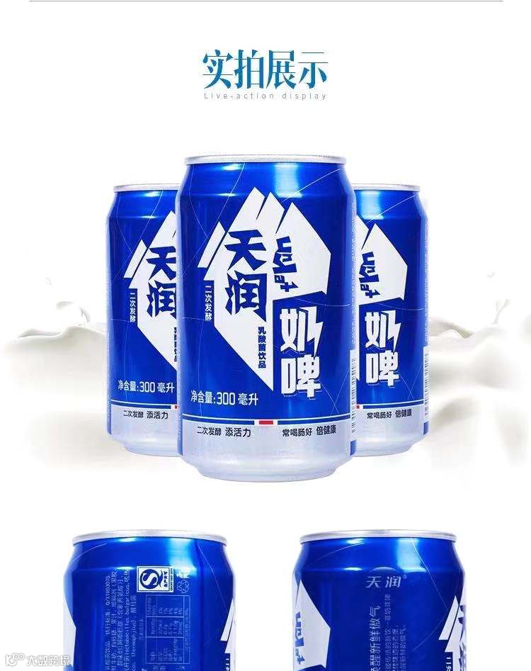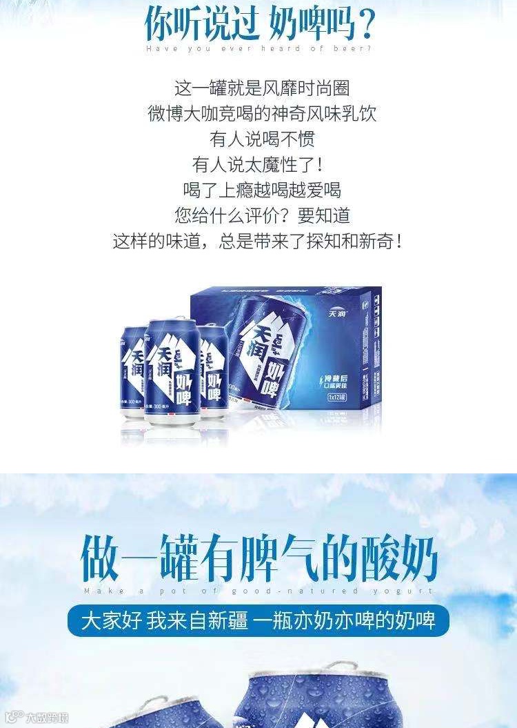 【粉丝群补贴】新疆天润奶啤酸奶含乳酸菌牛奶饮料 300ml*12罐整箱发货 原价:120元