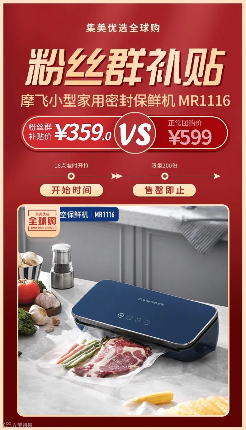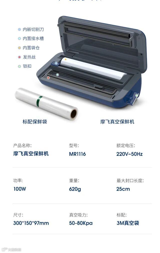【粉丝群补贴】摩飞小型家用密封保鲜机 MR1116 送密封袋 原价:599元 粉丝群补贴价:359元