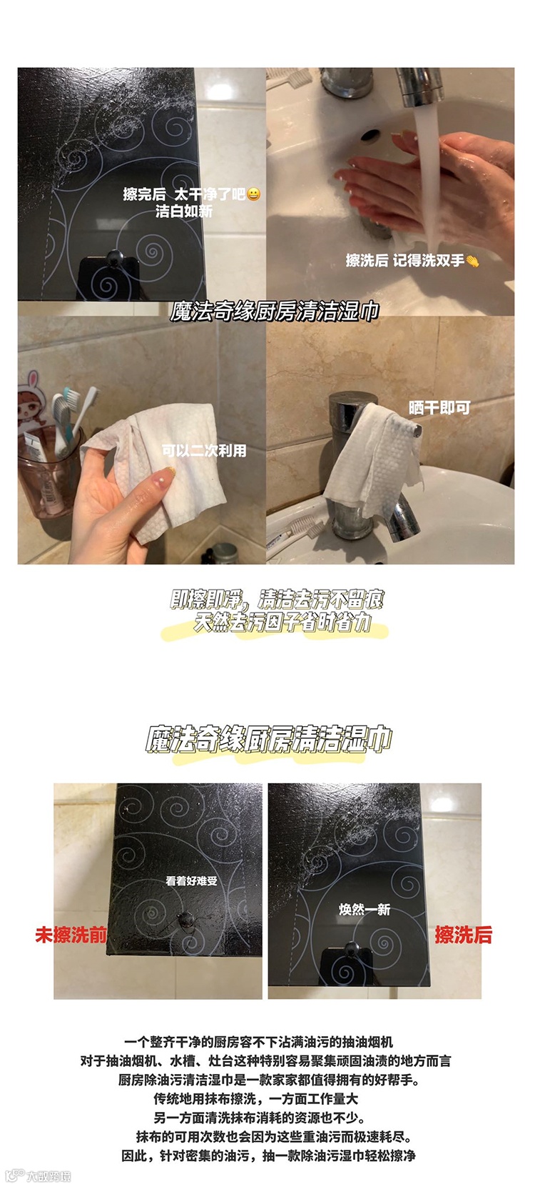 【粉丝群补贴】魔法奇缘·厨房清洁湿巾去油去油污专用 10包 原价:49元 粉丝群补贴价:29.9元
