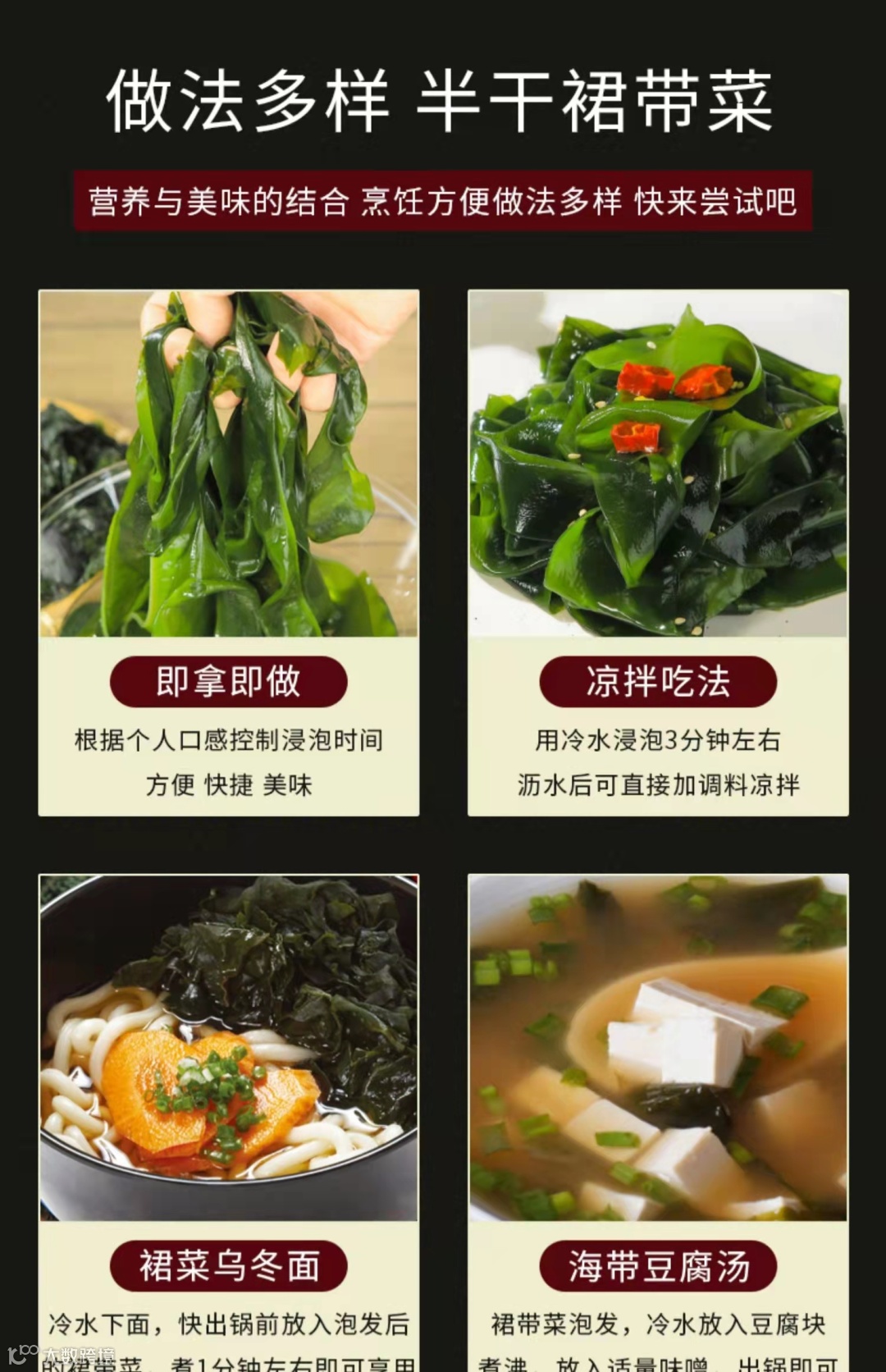 裙带菜叶俗称海木耳,北纬39度黄金水域养殖,纯天然海洋蔬菜,原生态海水无污染加工,是一款集炒,拌,涮锅的最佳料理原料
