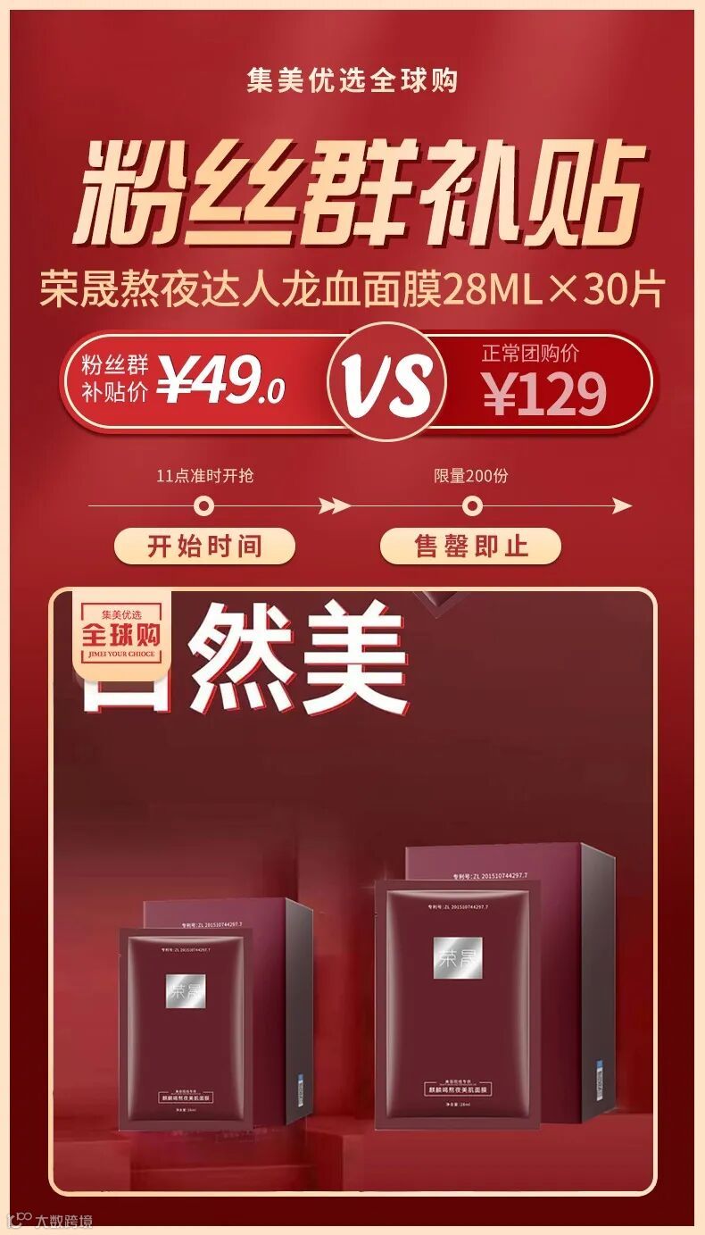 【粉丝群补贴】荣晟熬夜达人龙血面膜28ml×30片 原价:129元 粉丝群补贴价:49元