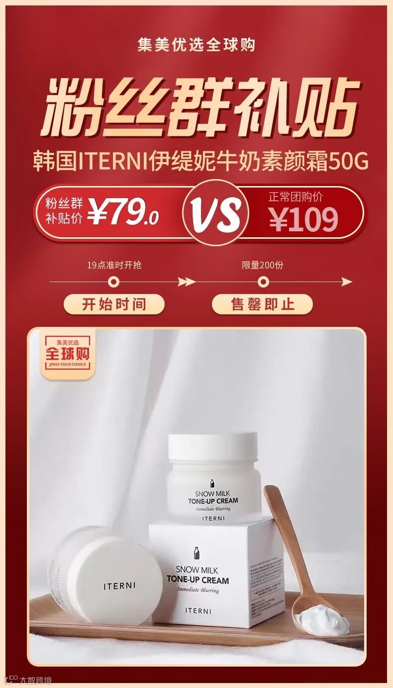 【粉丝群补贴】韩国iterni伊缇妮牛奶素颜霜50g 原价:109元 粉丝群补贴价:79元