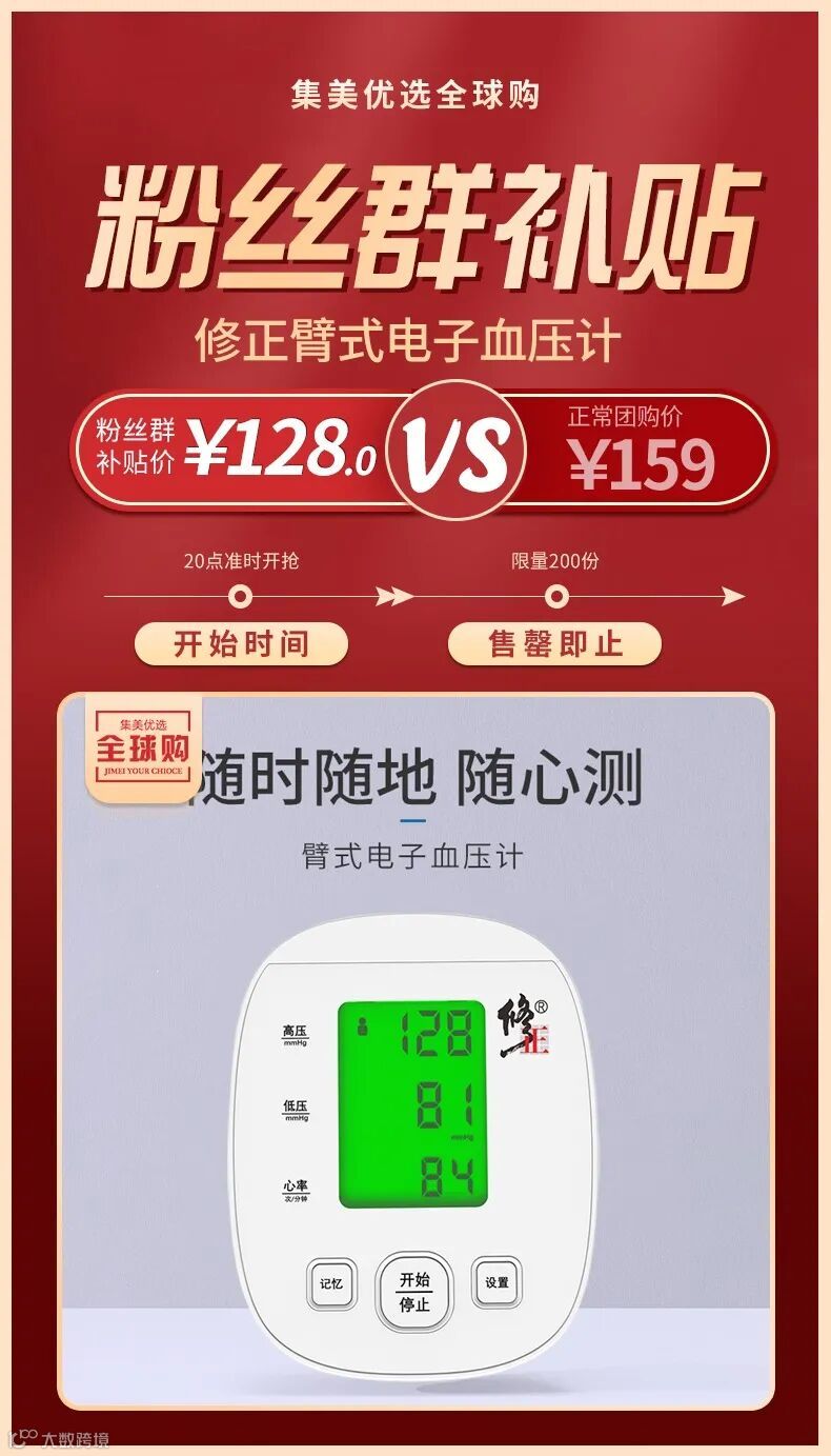【粉丝群补贴】修正臂式电子血压计 原价:159元 粉丝群补贴价:128元
