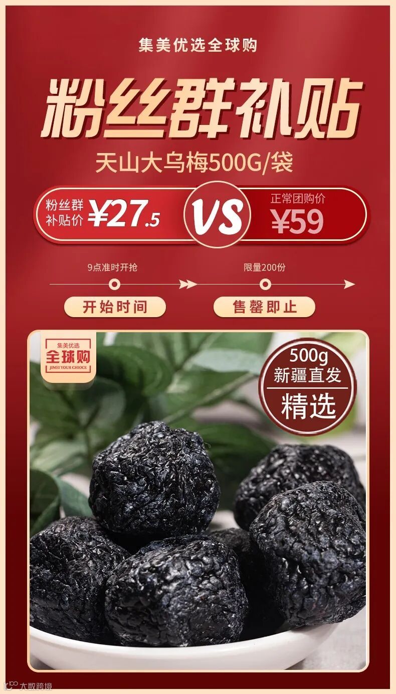【粉丝群补贴】天山大乌梅500g/袋个大肉厚酸甜可口 原价:59元 粉丝群补贴价:27.5元起