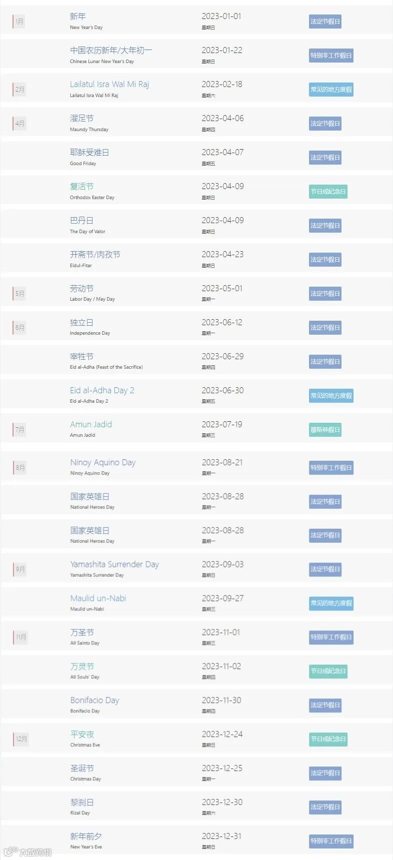菲律宾重要节日