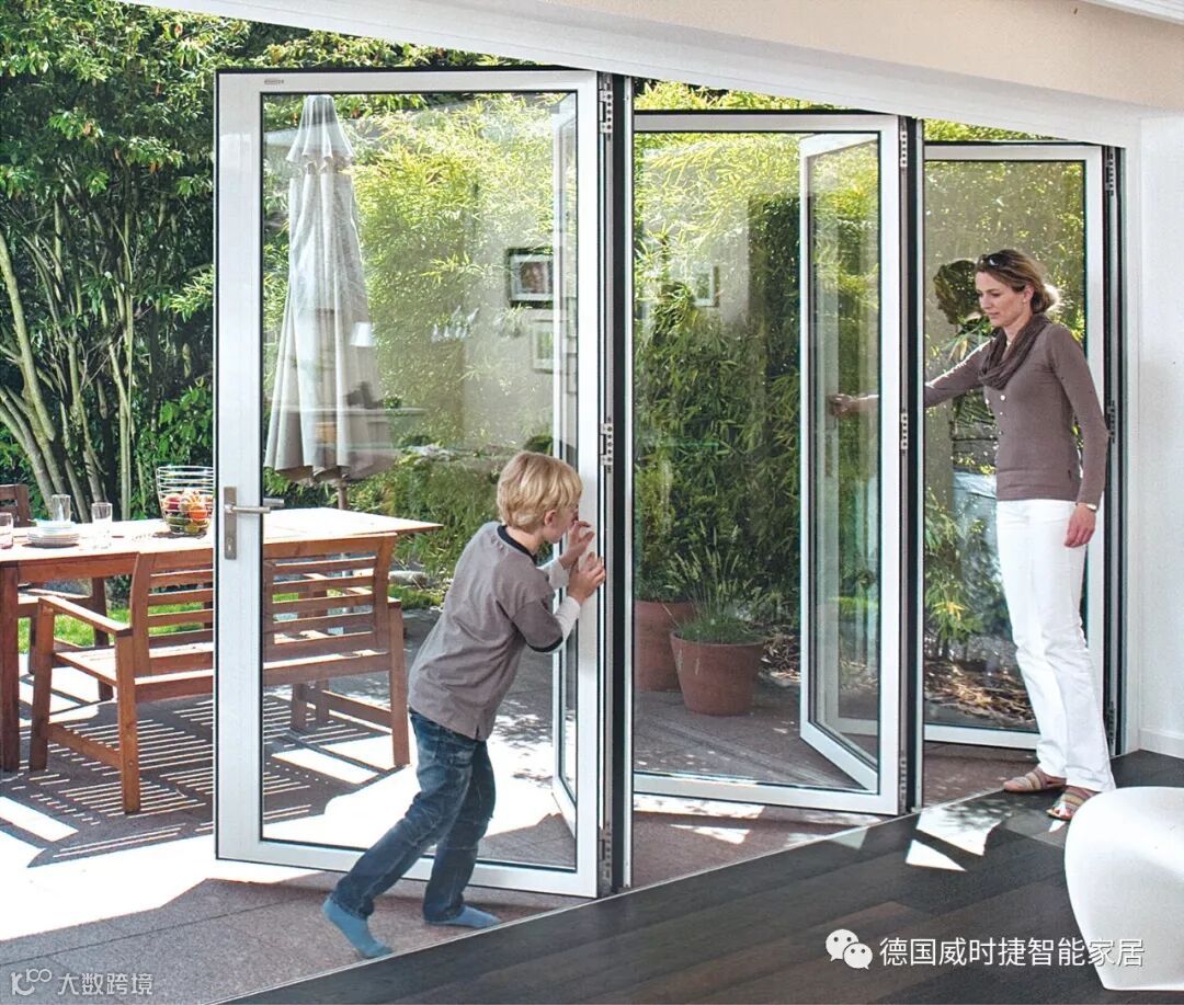 德国威时捷2018全新推出的全景折叠门,隔音隔热性能良好,搭载德国进口五金配件,开启流畅,持久耐用,门扇可以折叠到侧边,视野广阔,门扇宽度比普通折叠门窄,风格简约时尚,适合不同的装修风格。