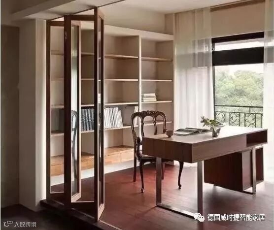 与传统以合页为轴,占用空间较大的传统平开门相比,折叠门占用的空间要少很多。推拉门实用方便却只能开启一半空间,折叠门却能做到全部开启,尽全力减少对空间面积的占用。