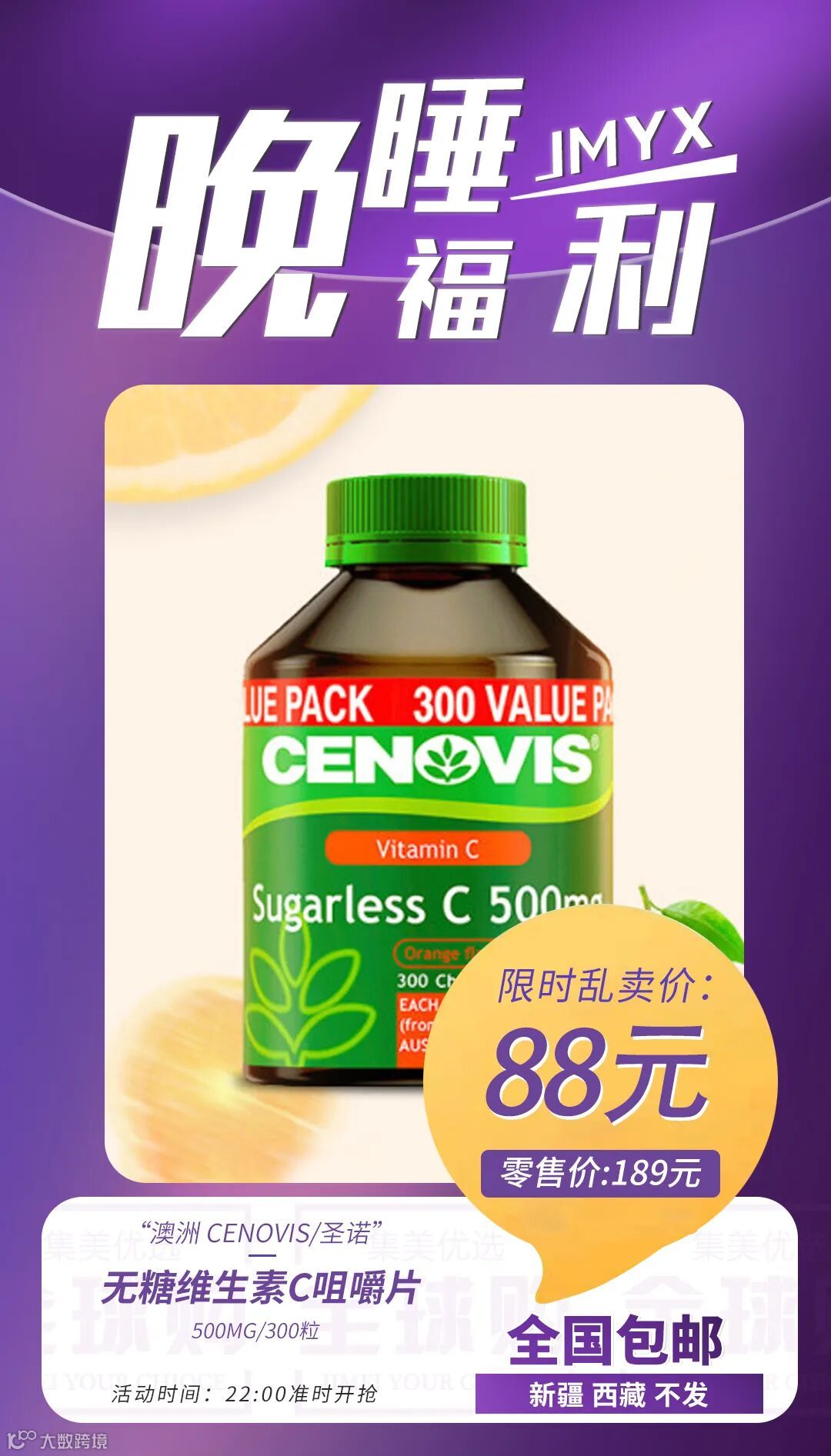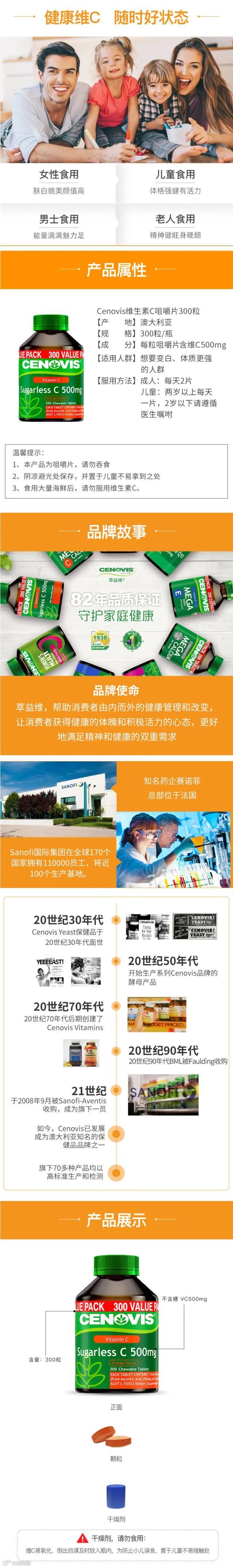 【爆款返场】澳洲 cenovis/圣诺 无糖维生素c咀嚼片500mg/300粒