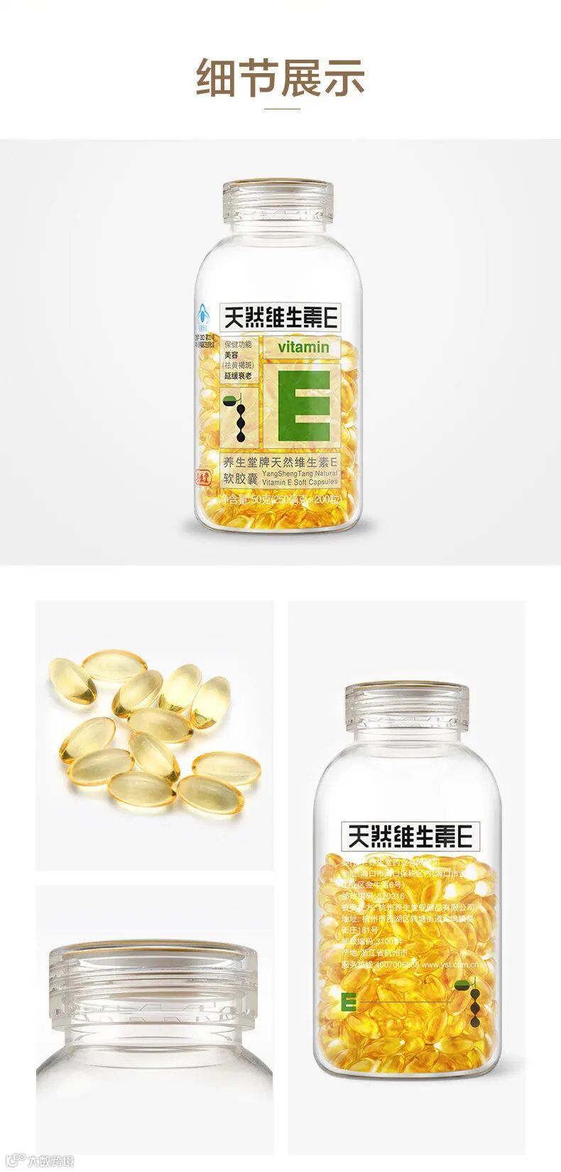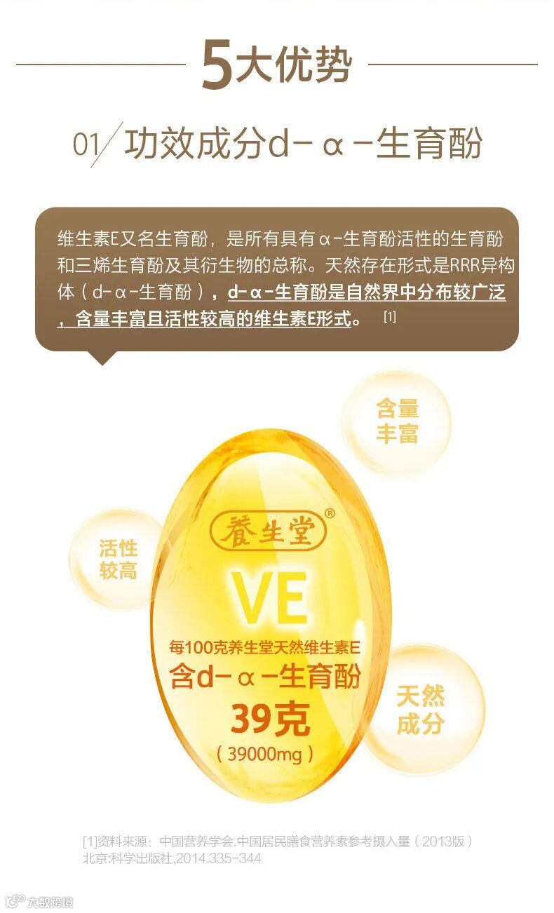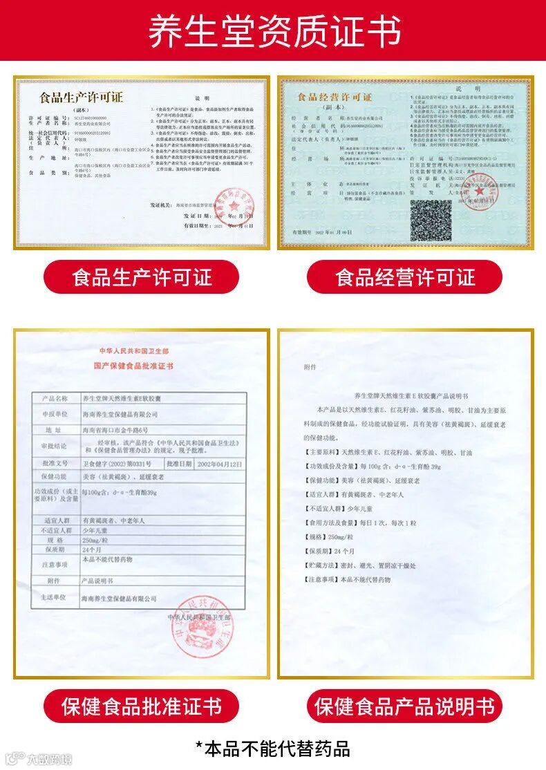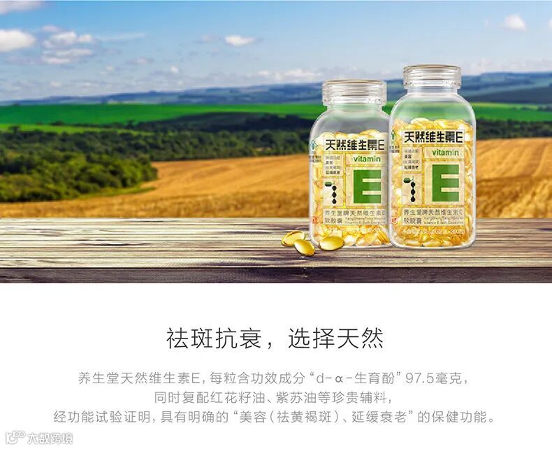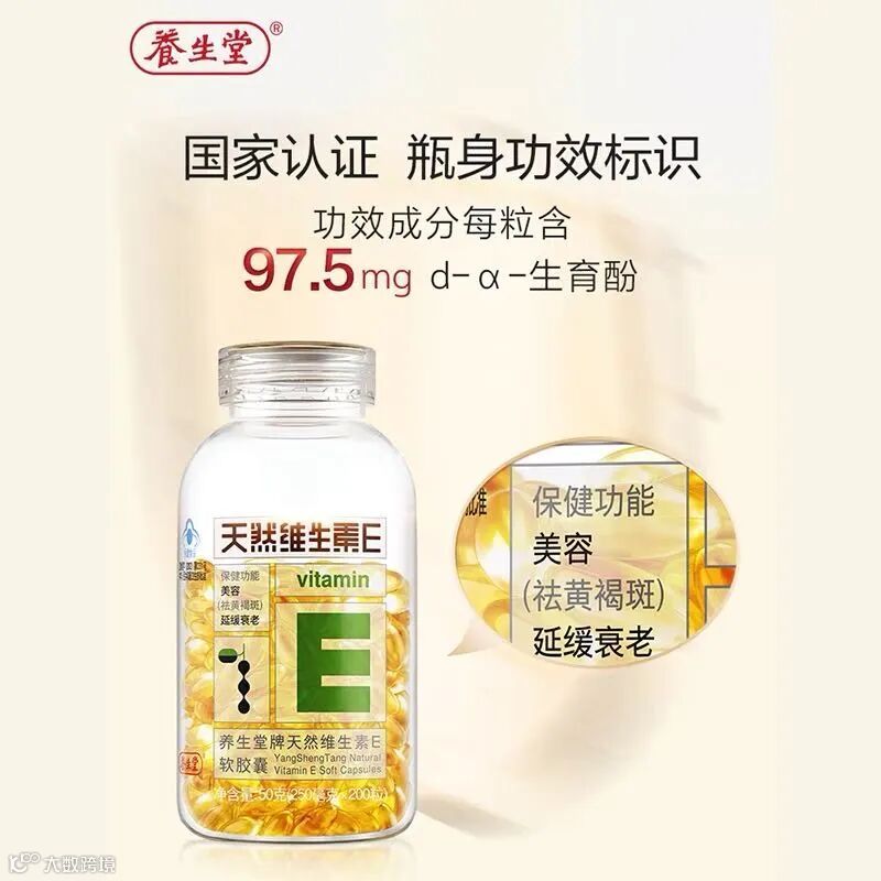 【爆款返场】养生堂天然维生素E软胶囊200粒(250毫克*200粒)/瓶