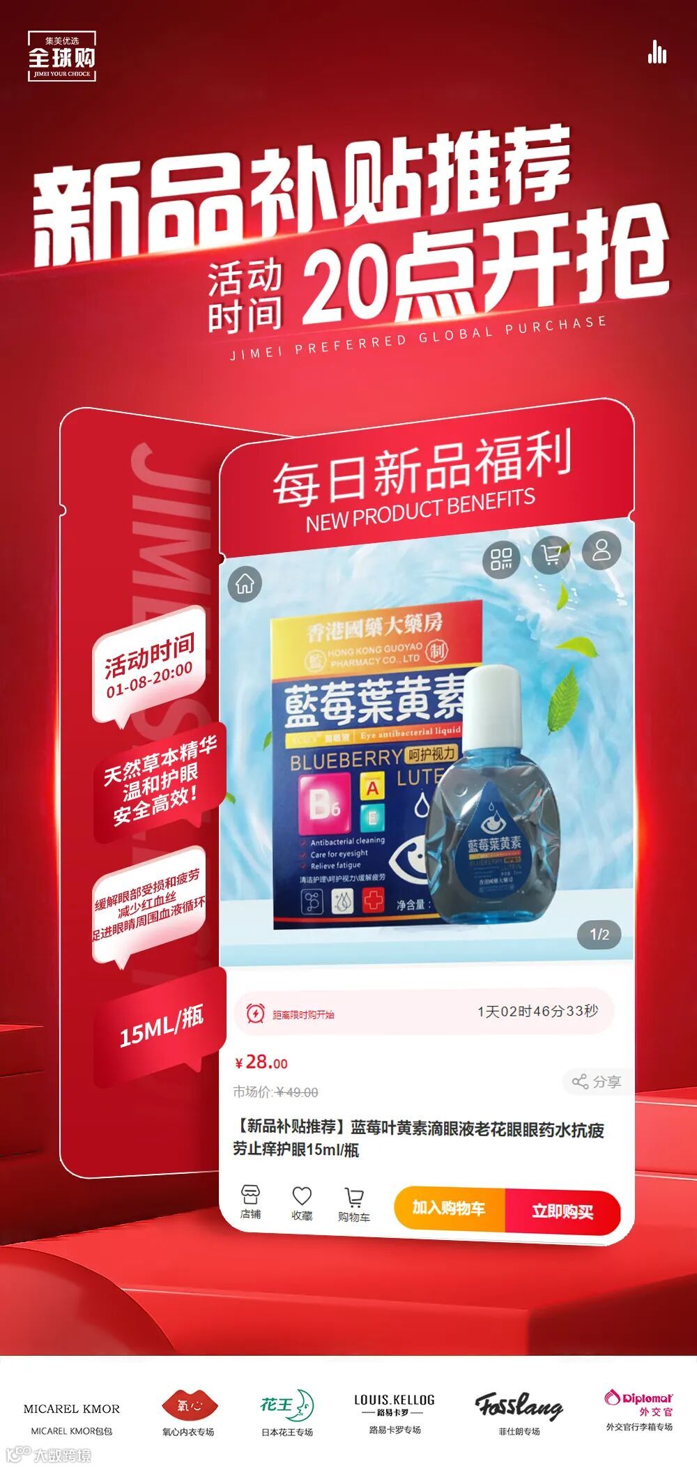 【新品补贴推荐】蓝莓叶黄素滴眼液老花眼眼药水抗疲劳止痒护眼15ml/瓶