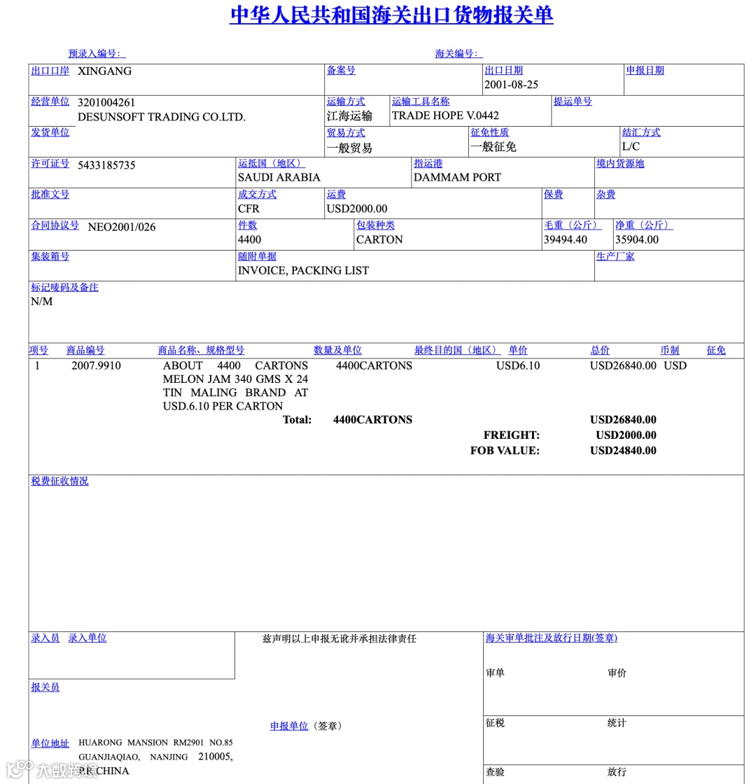 所谓分套处理,就是根据单证交付对象的不同,分别制作内容不同的单证。比如在报关数量和金额与实际有误差的情形下,给海关的单证按照原报关资料,给客户的单证则按照实际的数量和金额缮制。如果提单上的数量与报关数量一致,则可略微调整单价,在总数量不变的情况下减少总金额,使之符合实际收取的货款。