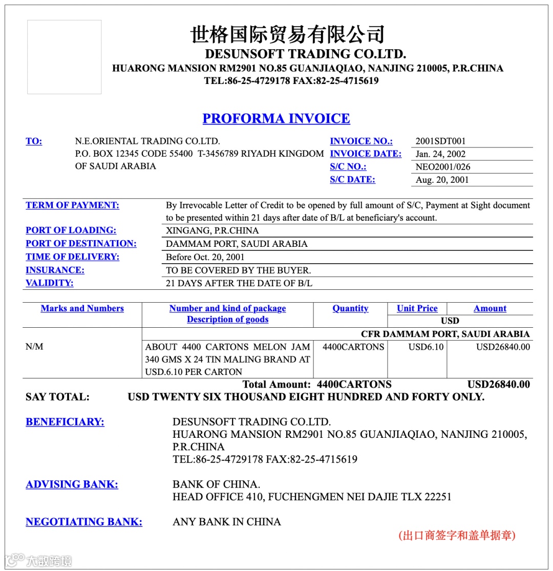 样式近似商业发票,几乎可以直接把商业发票过来,标题改为“PROFORMAINVOICE”即可。形式发票的用处,一是类似于单方面合同,作为报价和确定交易的工具。一些国家的客户喜欢“确认形式发票”的形式作为合同。