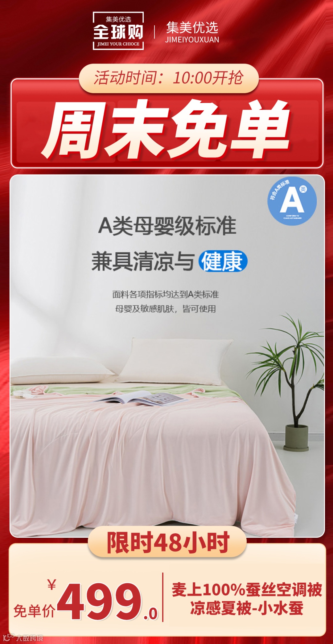 【周末免单】麦上 100%蚕丝空调被凉感夏被-小水蚕 原价:659元 粉丝群补贴价:499元