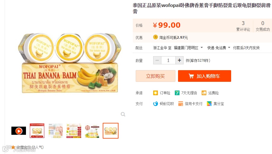 大牌团购价:39.9元 WOFOPAI卧佛牌香蕉膏