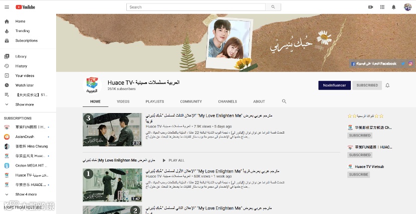 华策YouTube平台阿语频道主页面