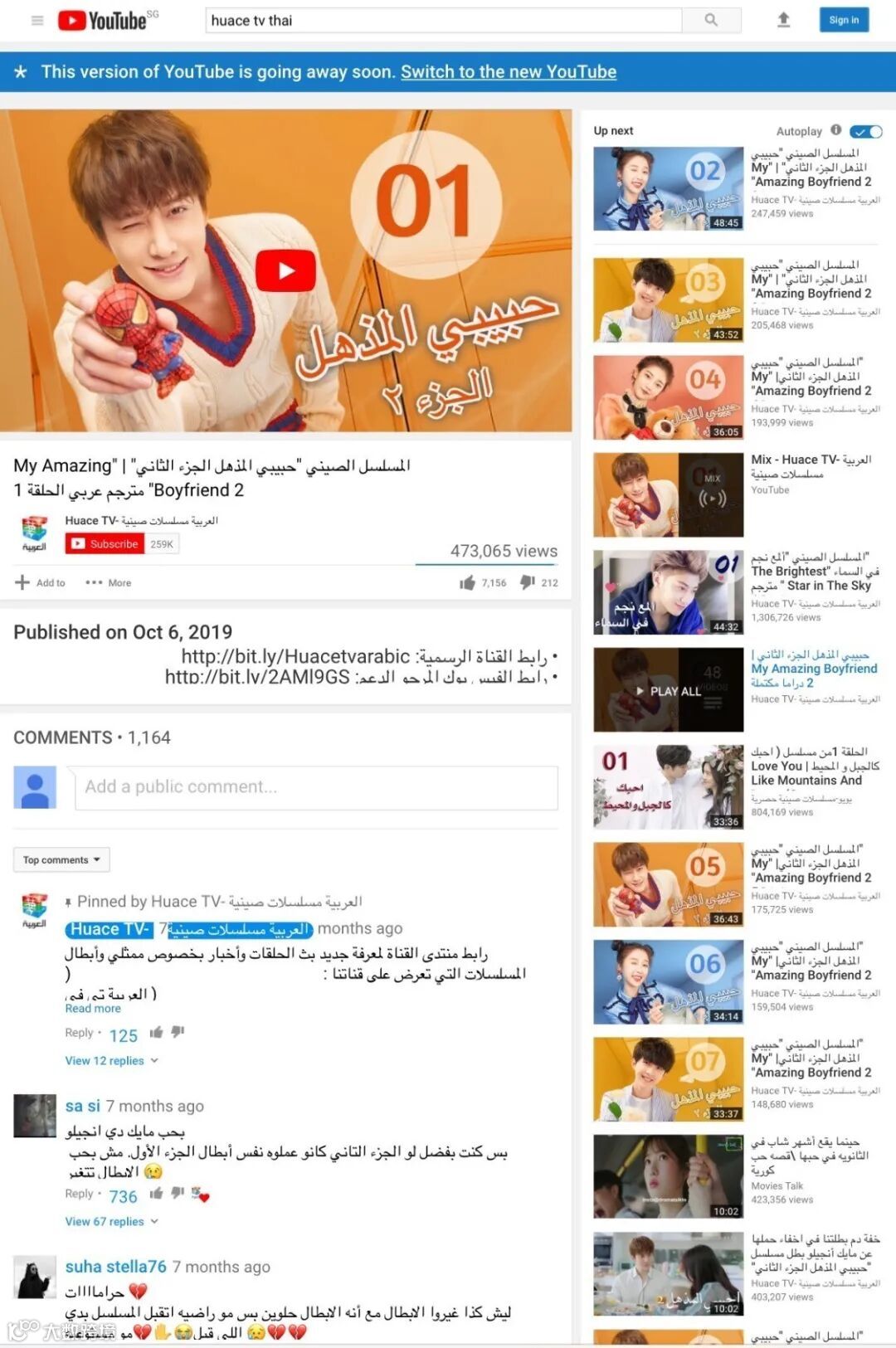 《甜蜜暴击》YouTube播出界面