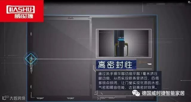 通过执手操作移动扇平移7毫米挤压被动扇,从而实现胶条受挤压,四周多锁点锁闭,让门窗实现优质的水密、气密和隔音性能,达到高密封效果;