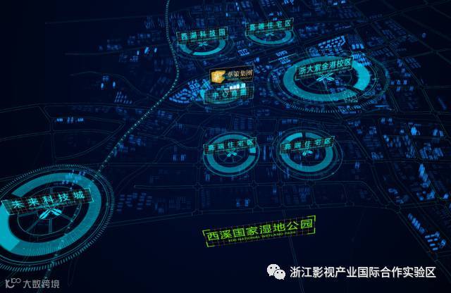 中国(浙江)影视产业国际合作实验区座落于杭州市西湖区西溪文化创意产业园以北,浙大紫金港校区以西的黄金地块,总投资15亿元,总建筑面积12万平方米。目前,园区正围绕国家文化走出去、“一带一路”战略紧锣密鼓地进行产业前瞻性布局。