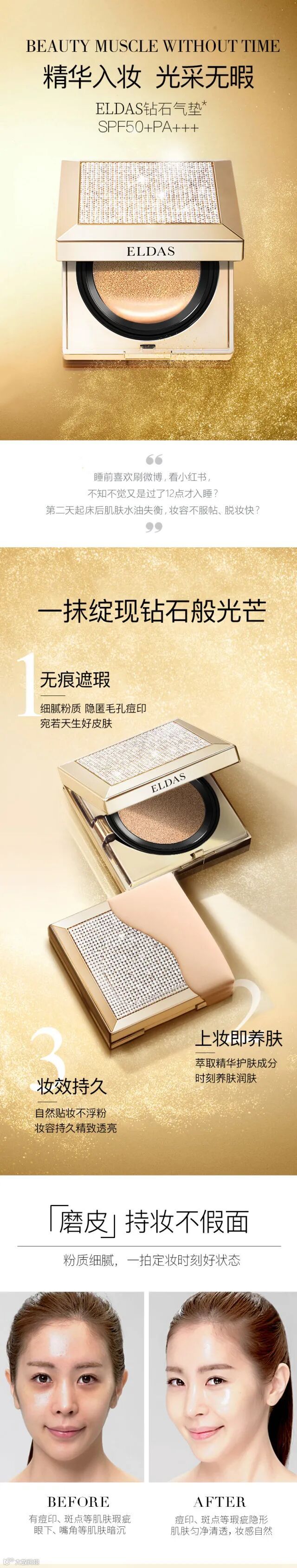 【大牌团购】韩国 高丽雅娜 Eldas/艾戴丝 钻石遮瑕气垫 原价:139元 大牌团购价:99元