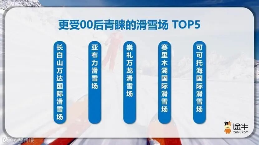 从客群结构来看,90后和00后是冰雪旅游的主力军,预订出游人次占比接近50%。00后尤其热衷滑雪、滑冰、雪橇、雾凇漂流、雪地摩托等具有挑战性的冰雪运动项目。其中,长白山万达国际滑雪场、亚布力滑雪场、崇礼万龙滑雪场、赛里木湖国际滑雪场、可可托海国际滑雪度场等滑雪场深受00后用户的青睐。