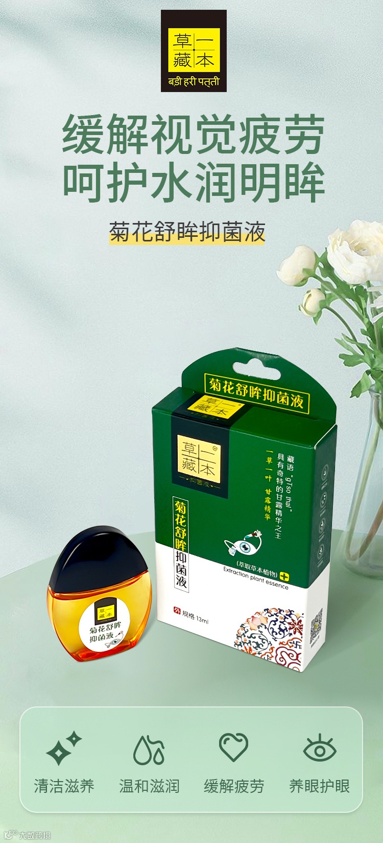 【口碑好物推荐】藏族草本菊花舒眸抑菌滴眼液13ml/瓶*2瓶 原价:59元 粉丝群补贴价:39.9元
