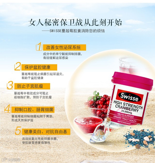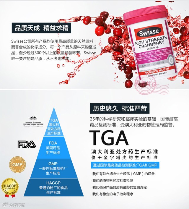 Swisse蔓越莓胶囊可谓是澳洲保健品中爆款的爆款,经常荣登断货排行榜,可见受欢迎程度之高,效果之棒!有效的改善泌尿系统的健康,纯植物配方,安全有效,更经澳洲药物局(TGA)认可含量保证。