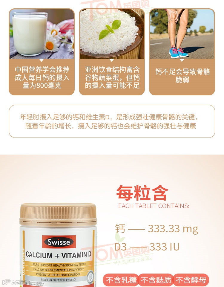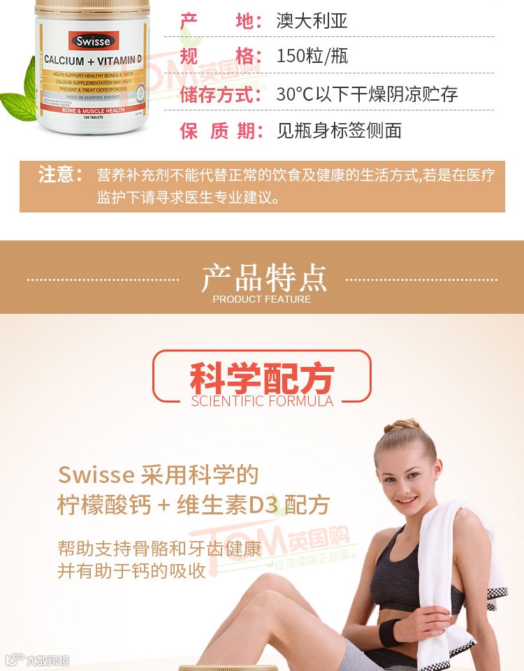 【爆款返场】澳洲Swisse 钙片维生素D150粒/1瓶(每天一次,随餐或餐后服用2-3粒)