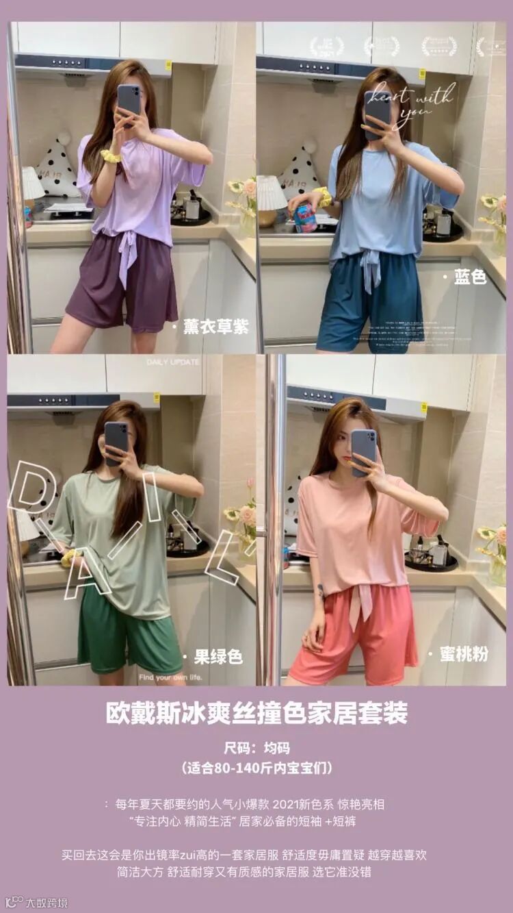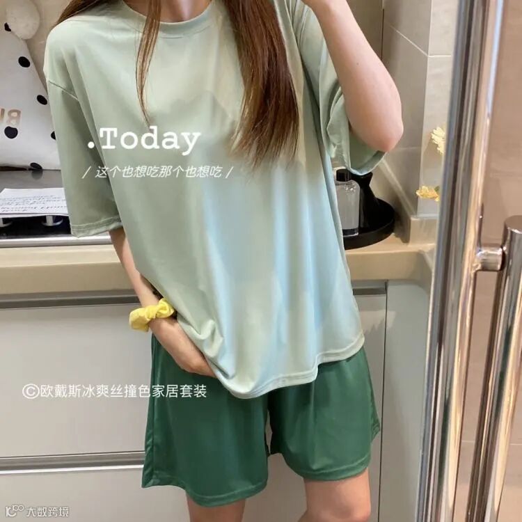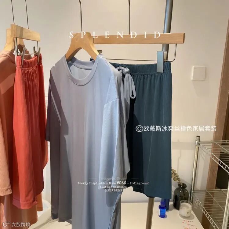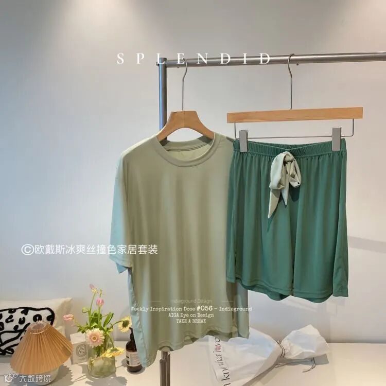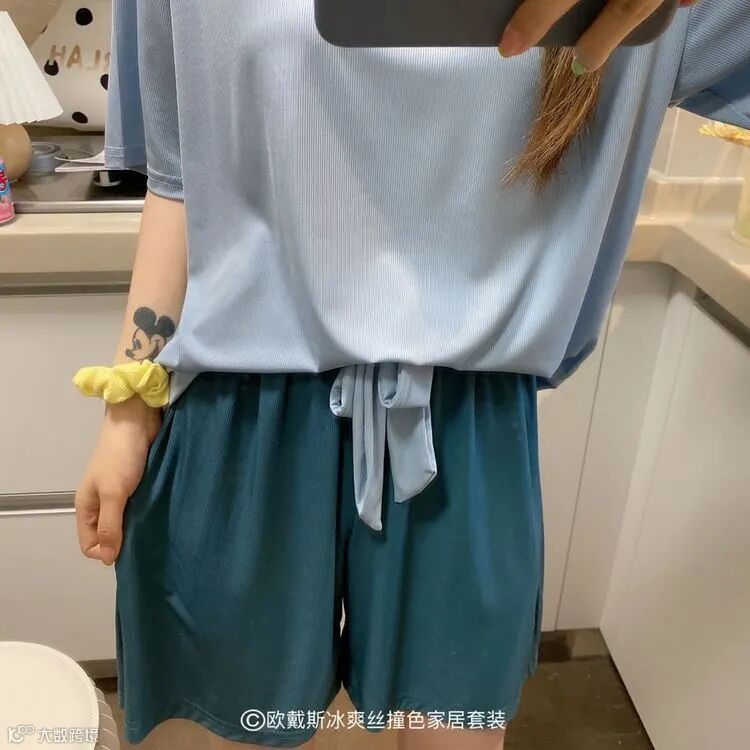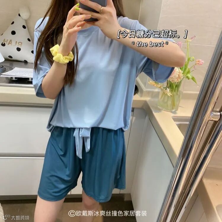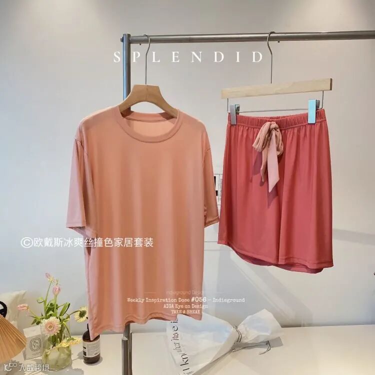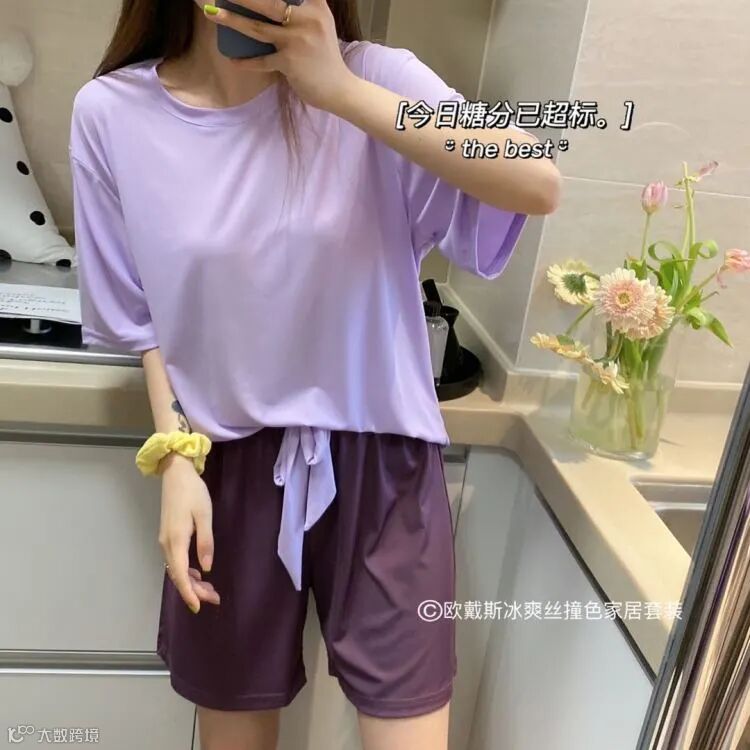【品名】欧戴斯冰爽丝撞色家居套装